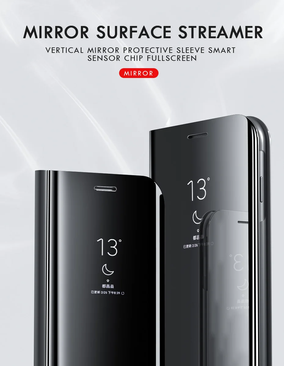 2. Умный зеркальный кожаный чехол-книжка, быстро просматривает SMS, звонки, дату, время и т. д.