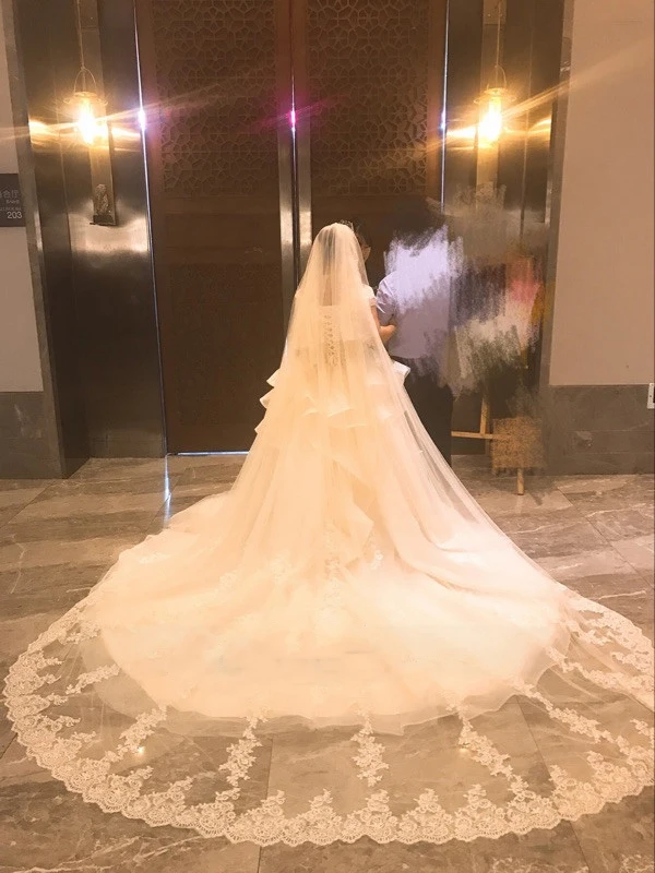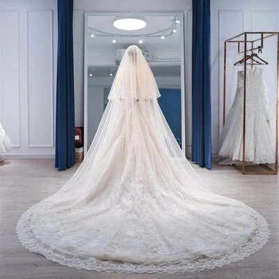 Фата свадебная Длинная с гребнем для невесты, кружевная Тюлевая Фата для венецианской свадебной фотосессии, роскошная, 5 м, 4 м, 2 T