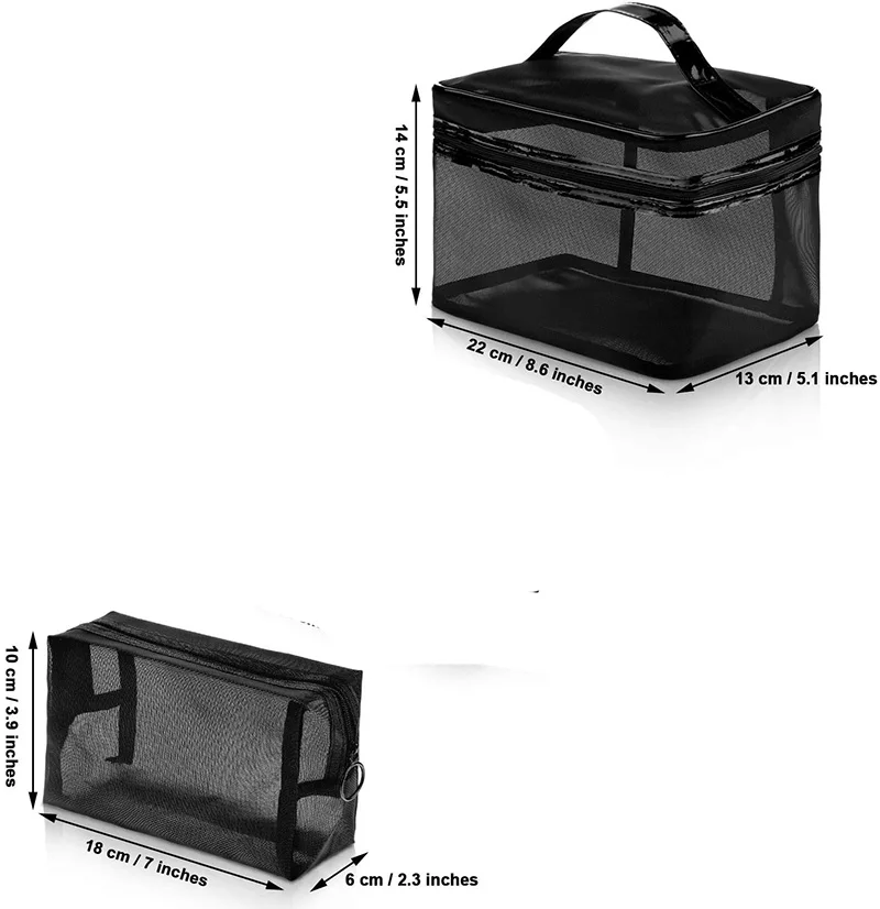 ✔Размер:Черный A: 8,66*5,11*5,51 дюйма/22*13*14 см;Черный B: 7*2,4*4 дюйма/18*6*10 см;✔Качественный материал: Он изготовлен из качественной нейлоновой сетки, которая является мягкой и прочной.✔Дорожная поставка: она подходит для переноски ваших средств для макияжа, зубной щетки, зубной пасты, когда вы находитесь в поездках.✔Широкое применение: Черные Сетчатые Сумки могут служить как косметичка, пенал,Дорожная сумка-Органайзер и так далее, может хранить вашу косметику,Например, кисти для макияжа, карандаши для бровей, губная помада или некоторые предметы на каждый деньКак ключи, карты, телефоны, монеты и так далееКомплектация: сетчатые косметички для макияжа