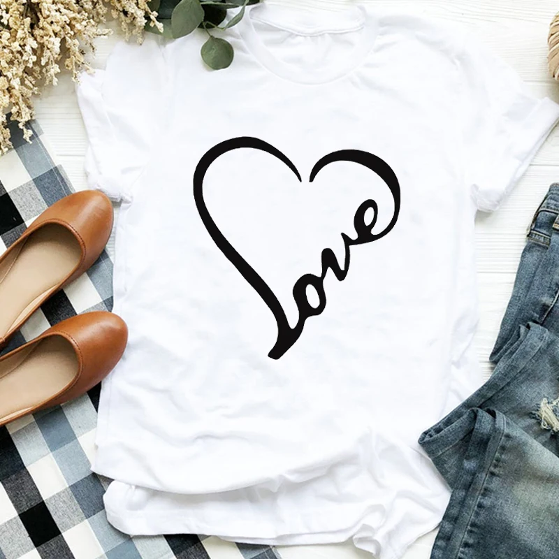 Женская одежда с принтом сердца, модная одежда 90-х, женская одежда с принтом, футболка, футболка, Женский Топ, футболка с графическим принтом
