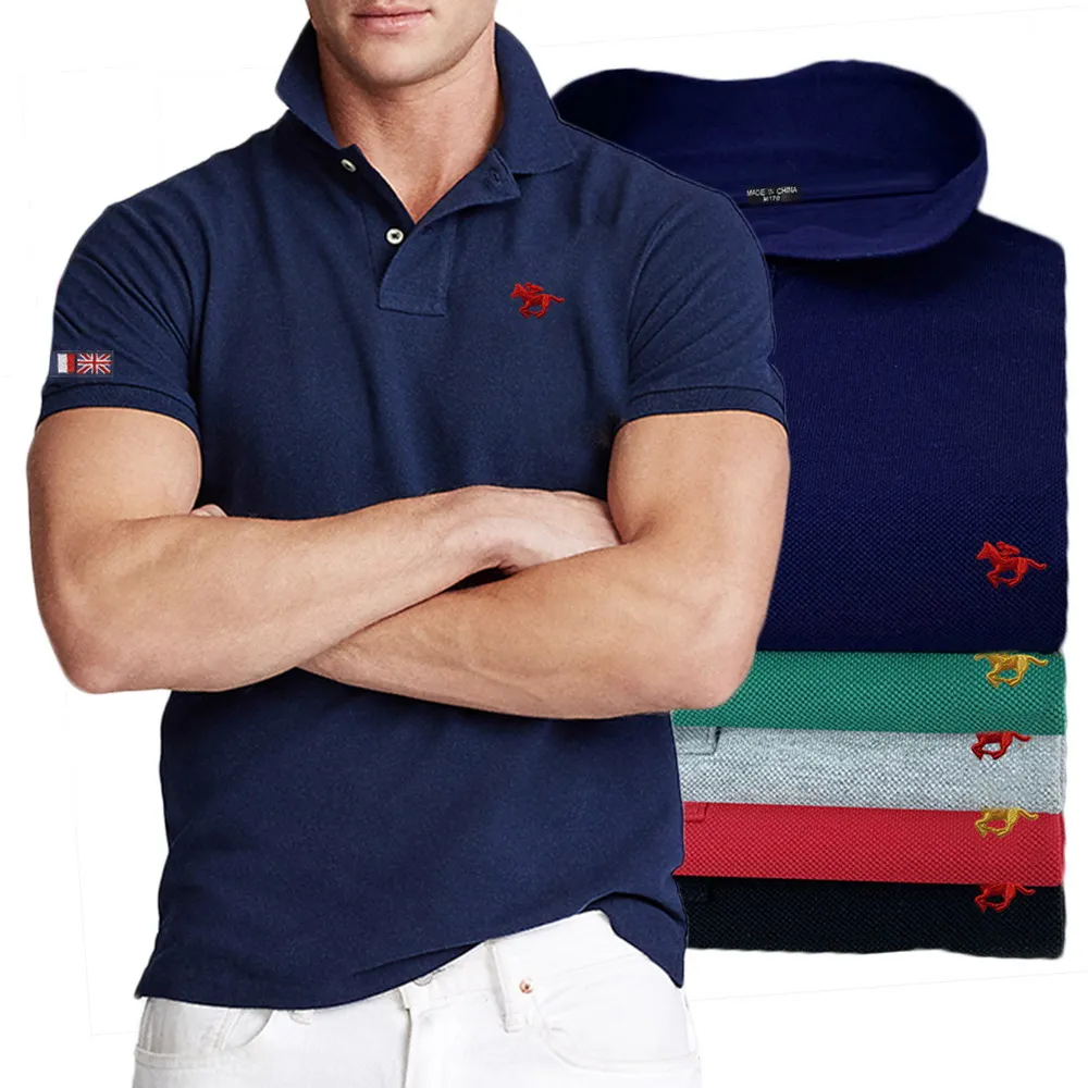 100% хлопок Одежда высшего качества 2021 сезон: весна-лето мужские рубашки поло с коротким рукавом повседневные мужские футболки-поло рубашки для мальчиков Модная одежда с отложным воротником, топы