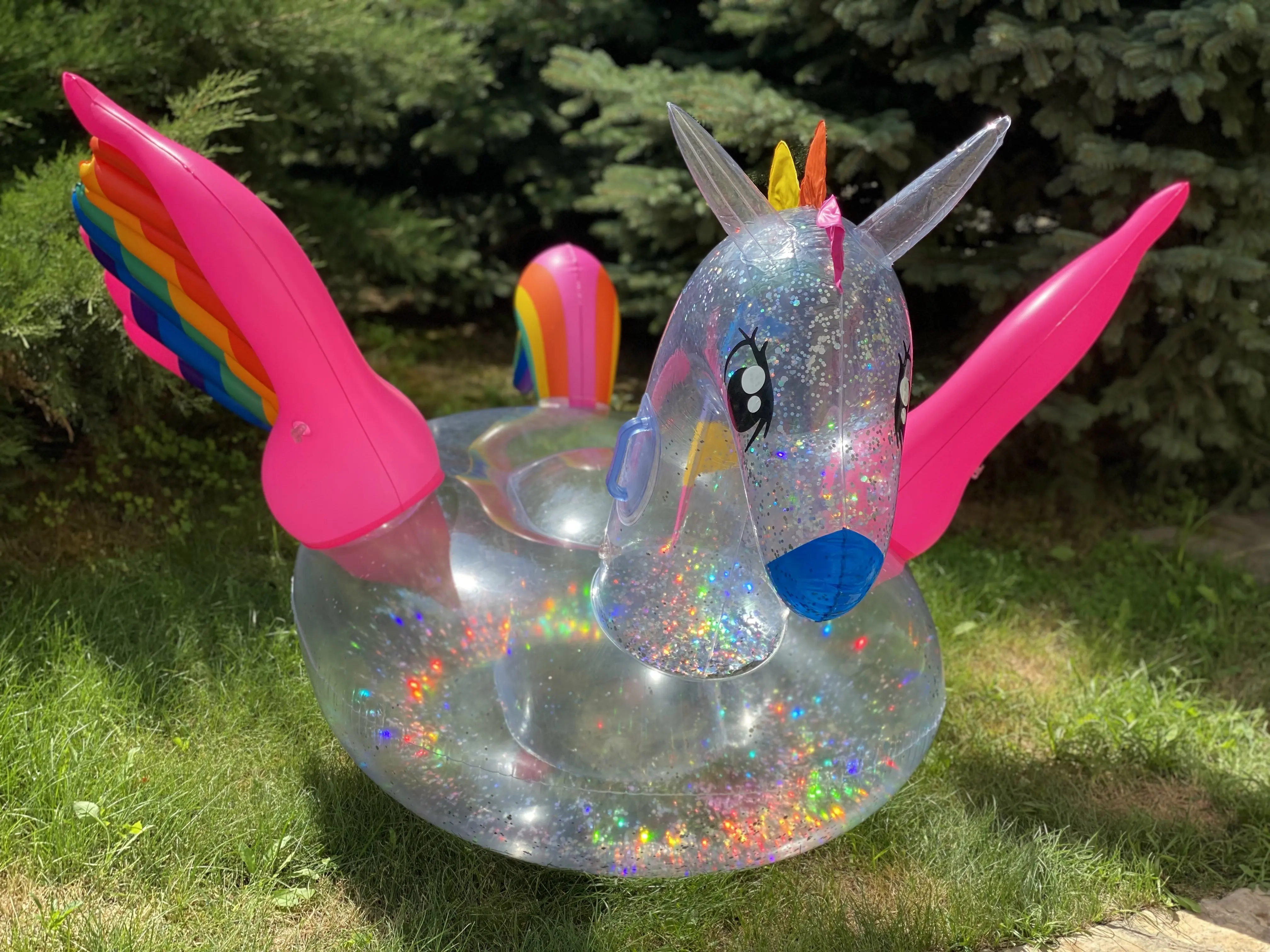 Мечтаете покататься на единороге? Тогда этот плотик для вас. Если Вы собрались отдохнуть с ребенком у моря или просто поехать в выходные за город к озеру, речке или бассейну, обязательно возьмите с собой яркий надувной круг в виде любимого единорога . Надувной единорог размерами 198х140х97 см. Отлично подходит для игр и отдыха в воде. Состоит из 2 воздушных камер и оснащен 2 удобными ручками-держателями. Характеристики: Размер в надутом состоянии: 198*140*97 см. Размер в сдутом состоянии: 226*173 см. Материал: винил, толщина 0.30 мм. Количество воздушных камер: 2. Максимальная нагрузка: 40 кг. Возраст: от 3 лет. Я очень довольна покупкой. Рекомендую!