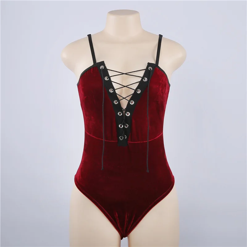 Цельное боди с глубоким V-образным вырезом на шнуровке, женское пор...