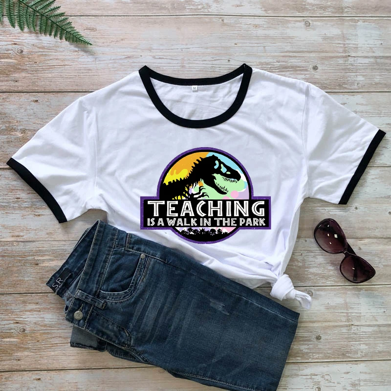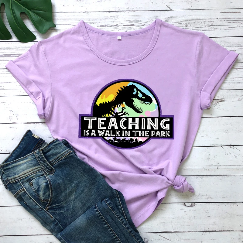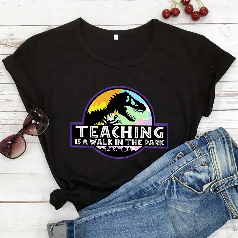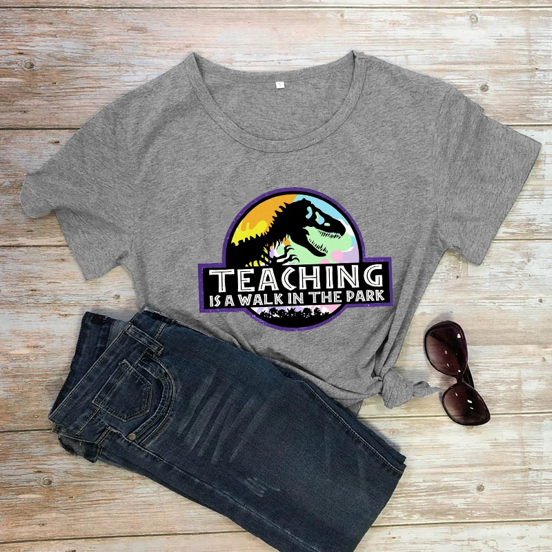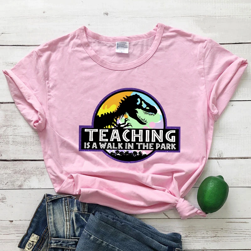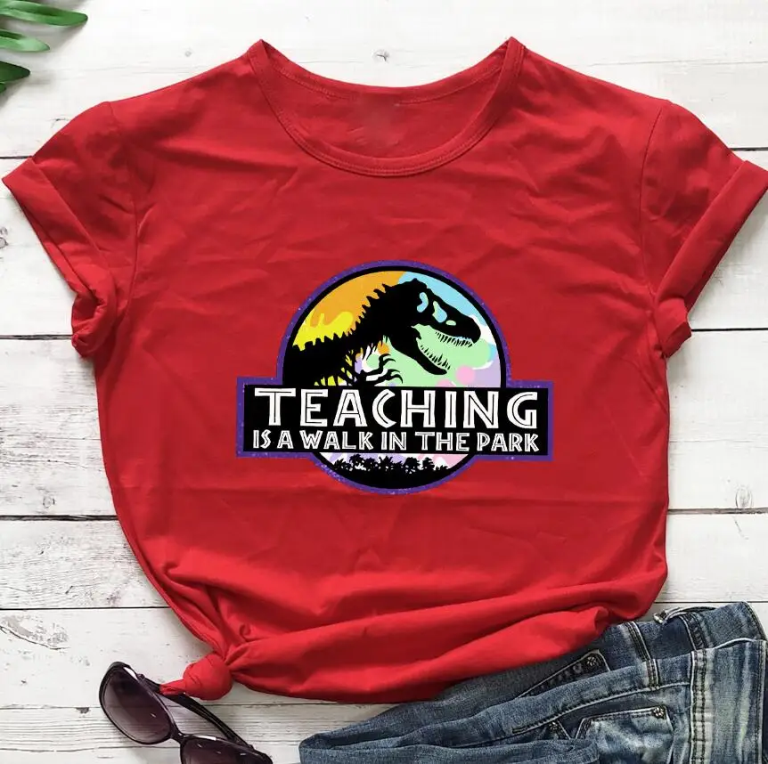 Женская Винтажная футболка с надписью TEACHING IS A WALK IN THE PARK, забавная футболка в стиле гранж для учителей, рубашка с динозаврами