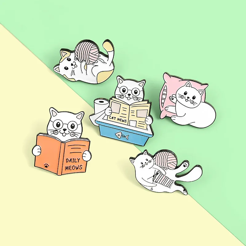 Новый эмали штырь на заказ кошка Вязание чтение игры Подушка мешоче...
