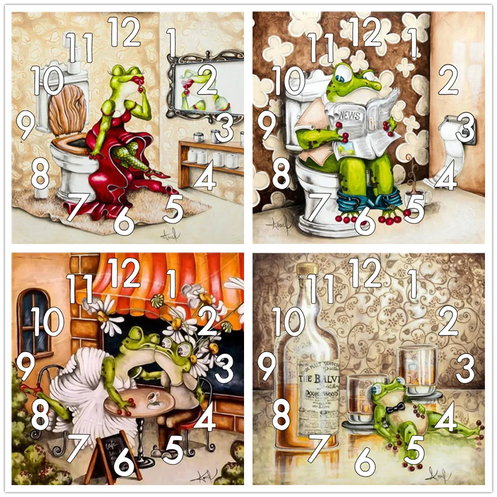 Полноформатная алмазная живопись лягушка и вышивка крестиком с часами, мозаика с механизмом 5D, сделай сам, квадратная, круглая лягушка, унитаз, 3d вышивка, подарок