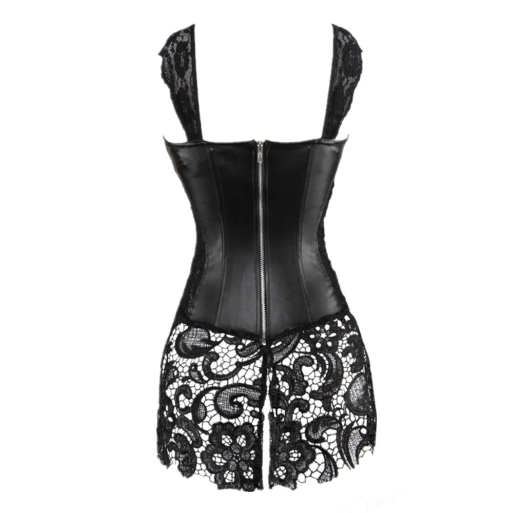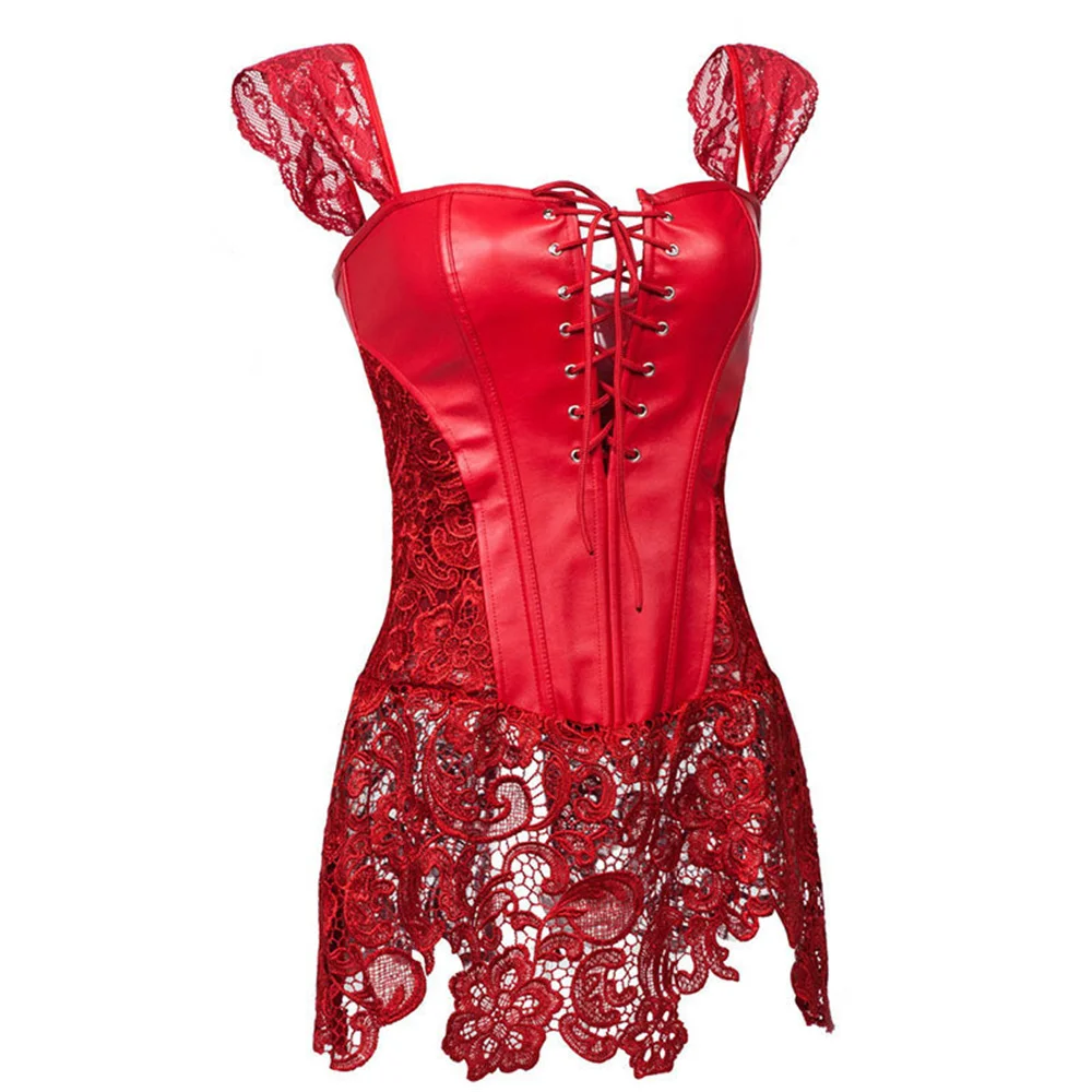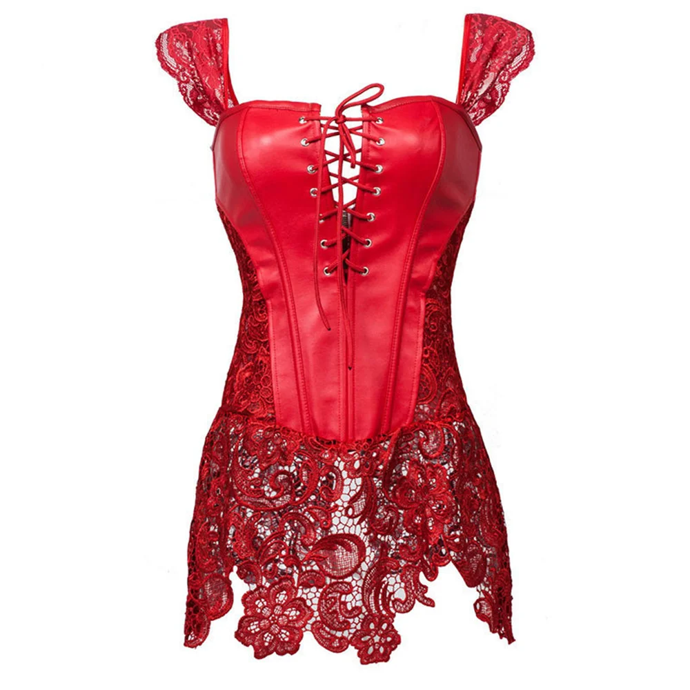 Сексуальный женский корсет из искусственной кожи с кружевом, корсет для коррекции талии и тела, корсет, платье