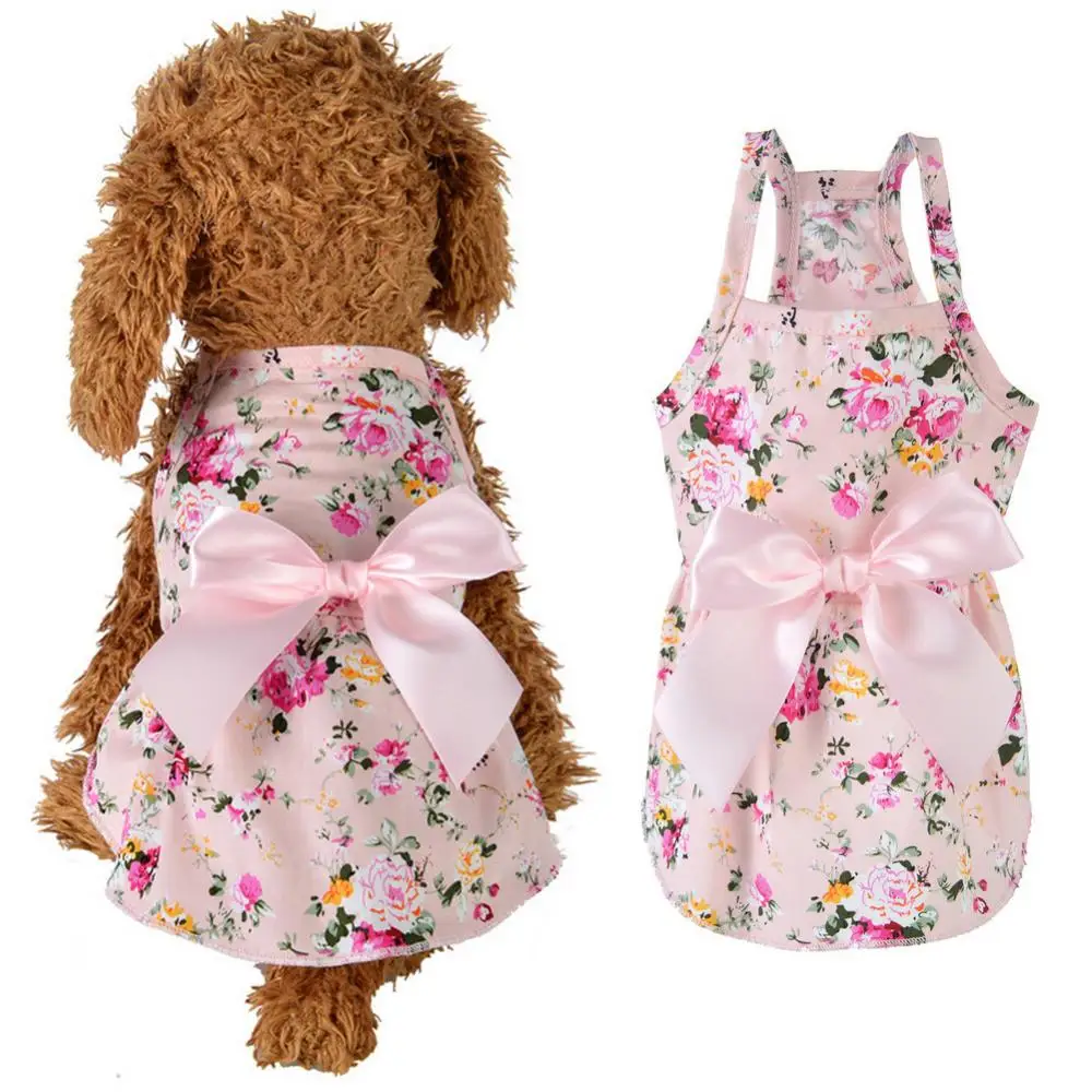 Милая летняя одежда для собак с цветочным принтом и бантом