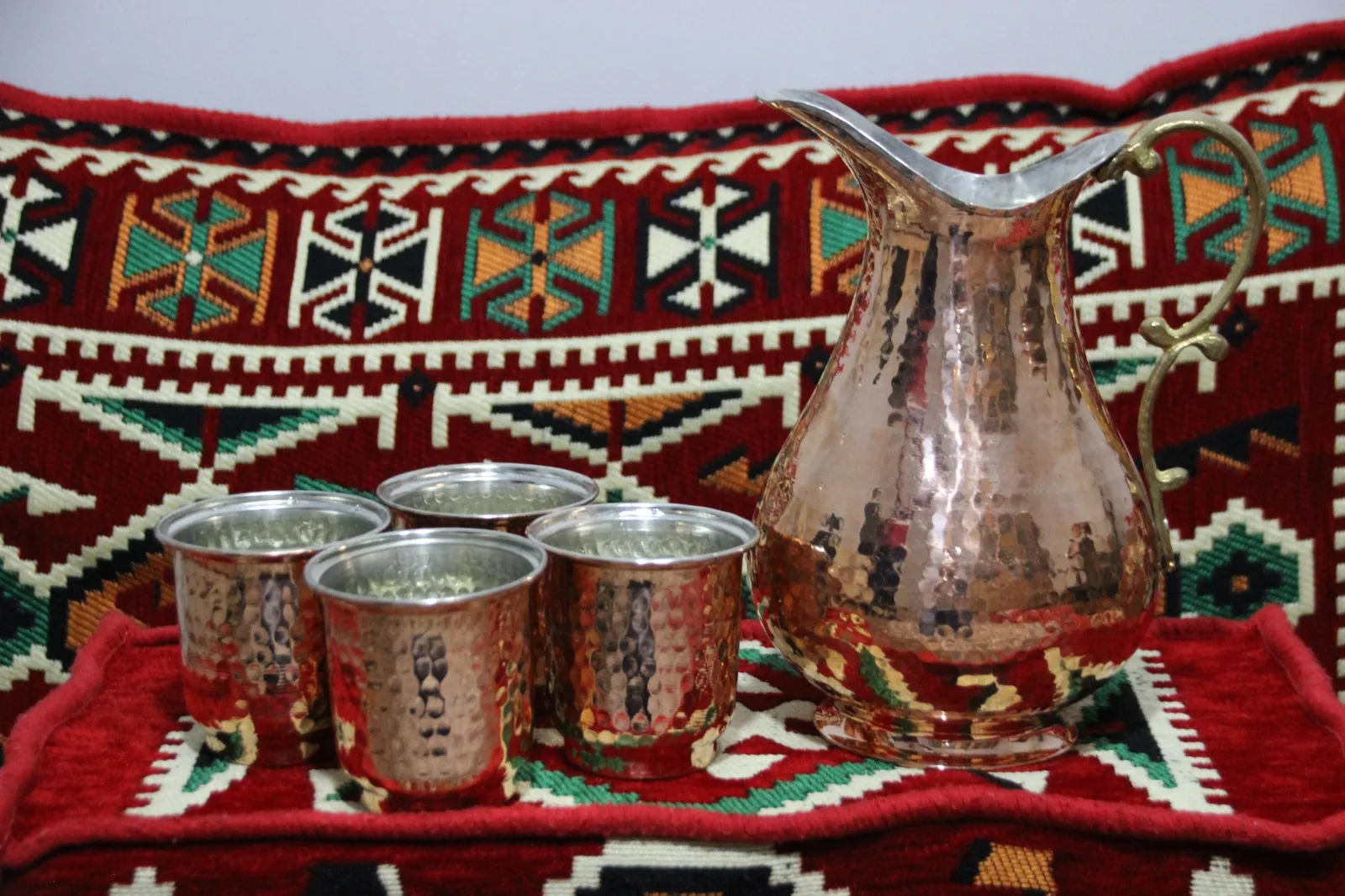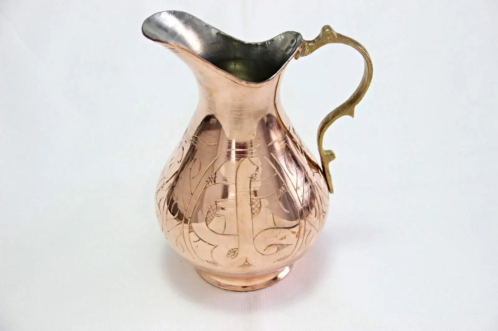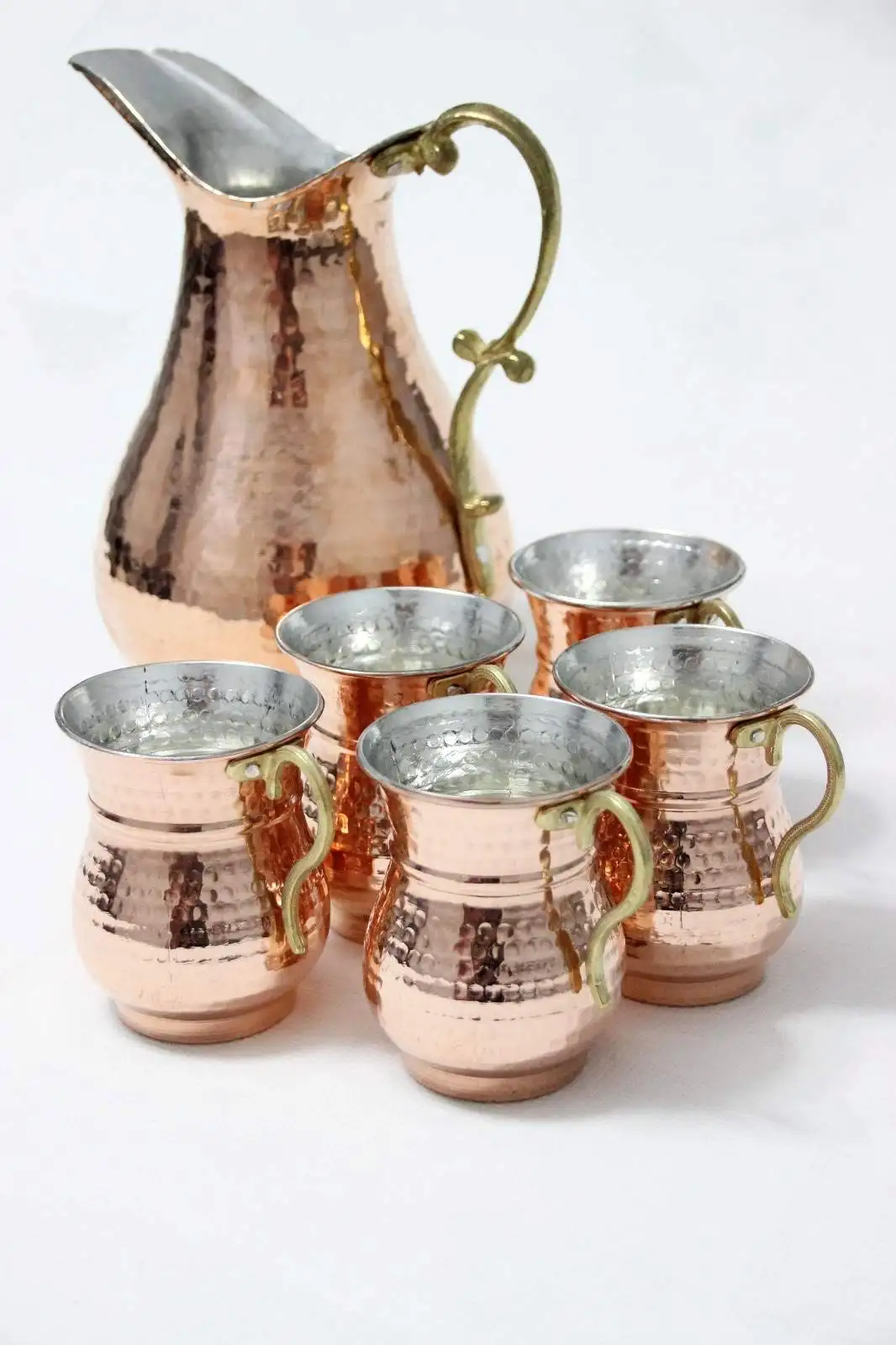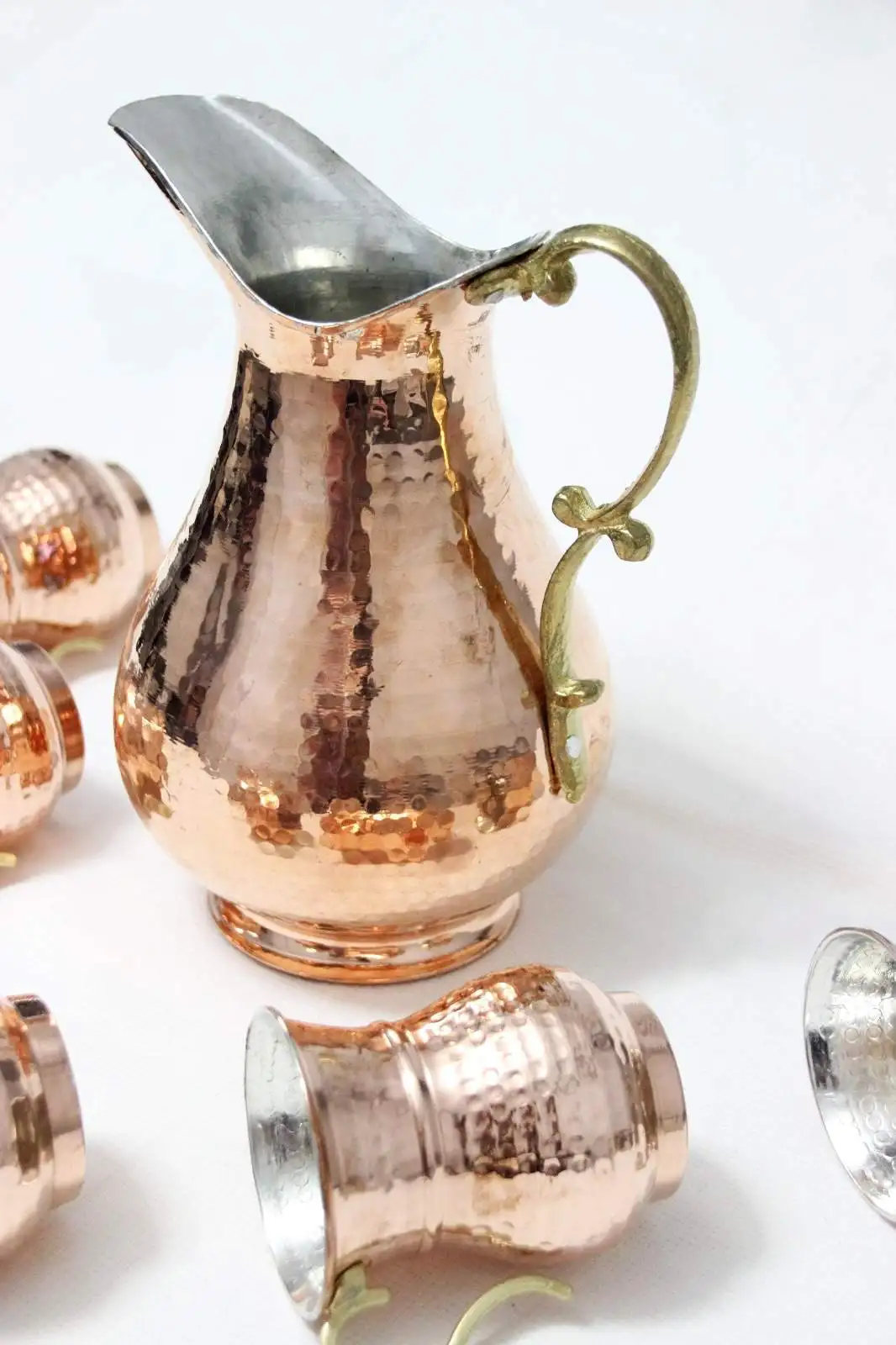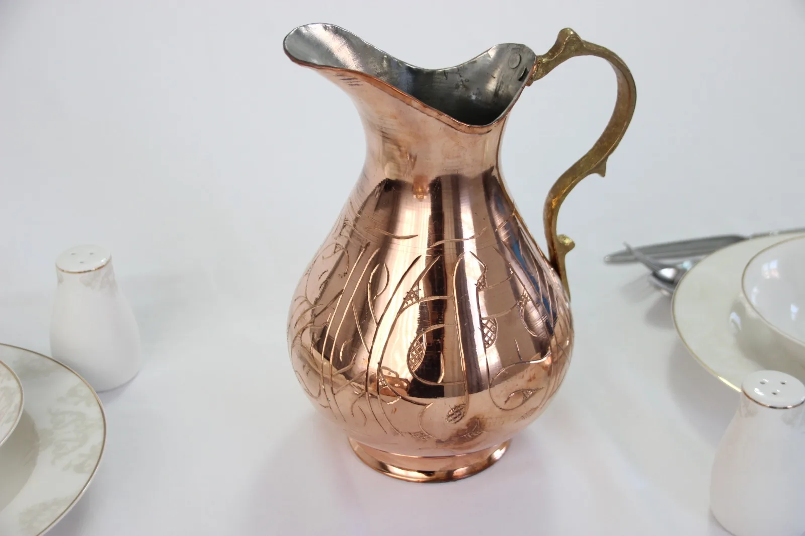 Аутентичные Медь кувшин для воды из твердого английского фарфора с рисунком с ручкой ручной работы турецкий 100 натуральный 2 литра