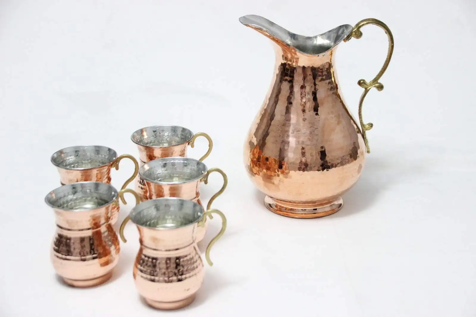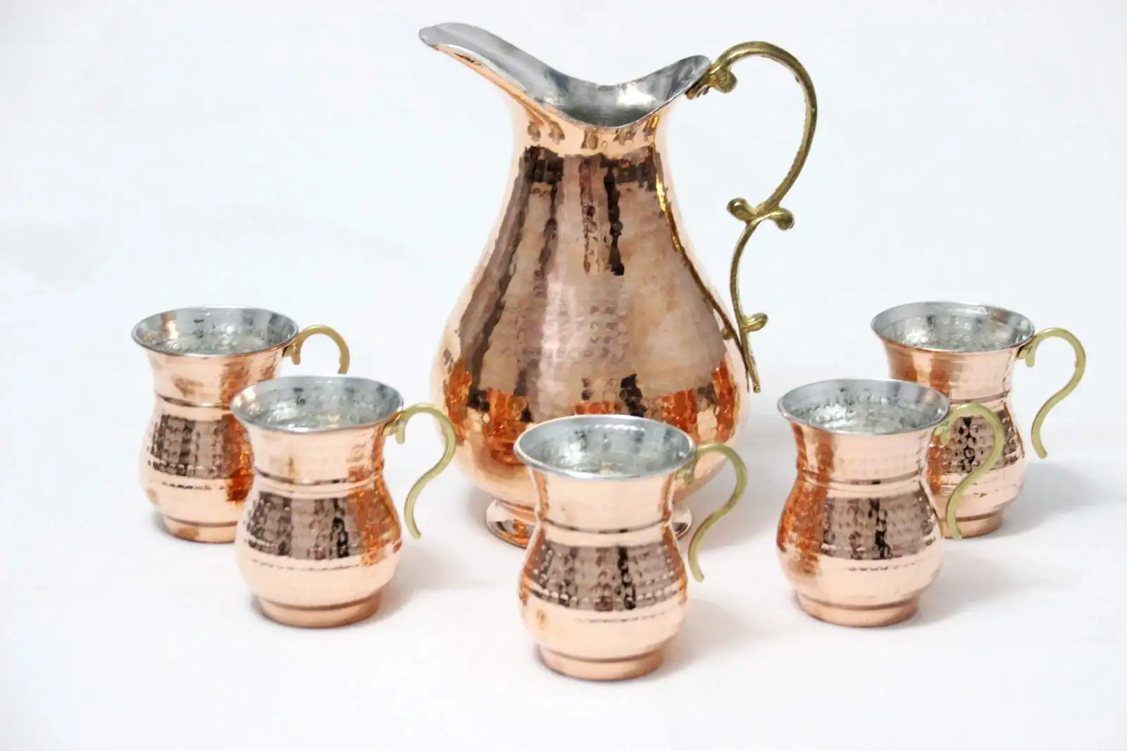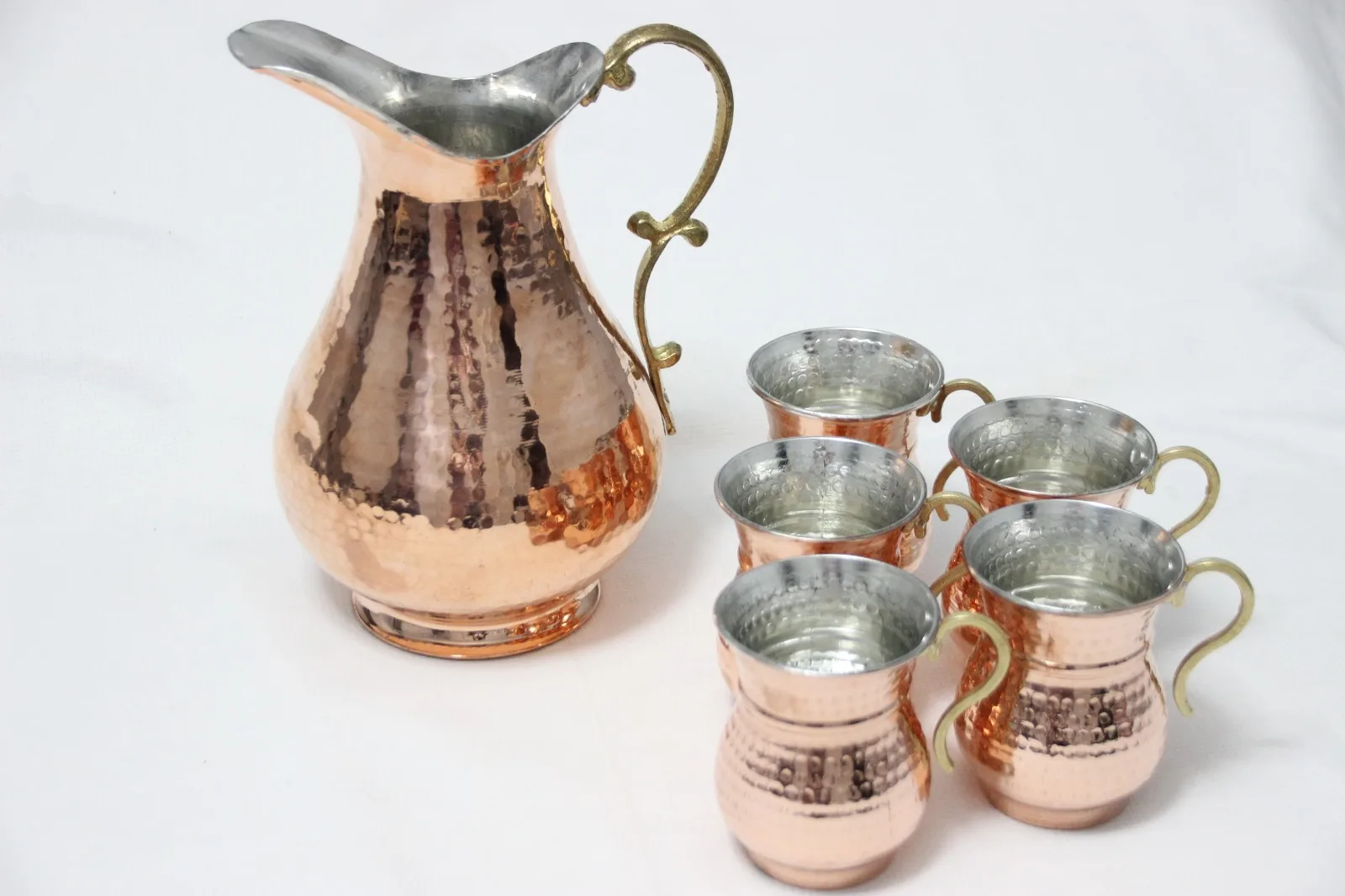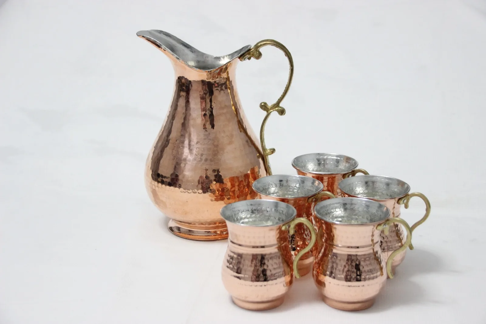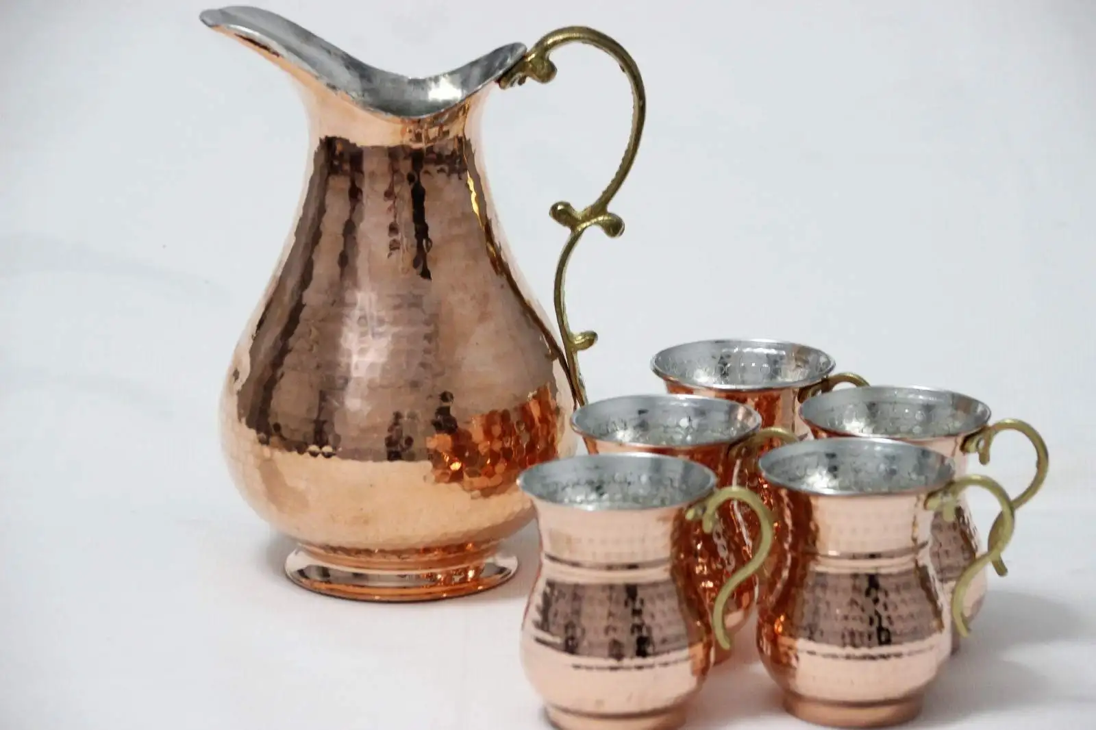 Аутентичные Медь кувшин для воды из твердого английского фарфора с рисунком с ручкой ручной работы турецкий 100 натуральный 2 литра