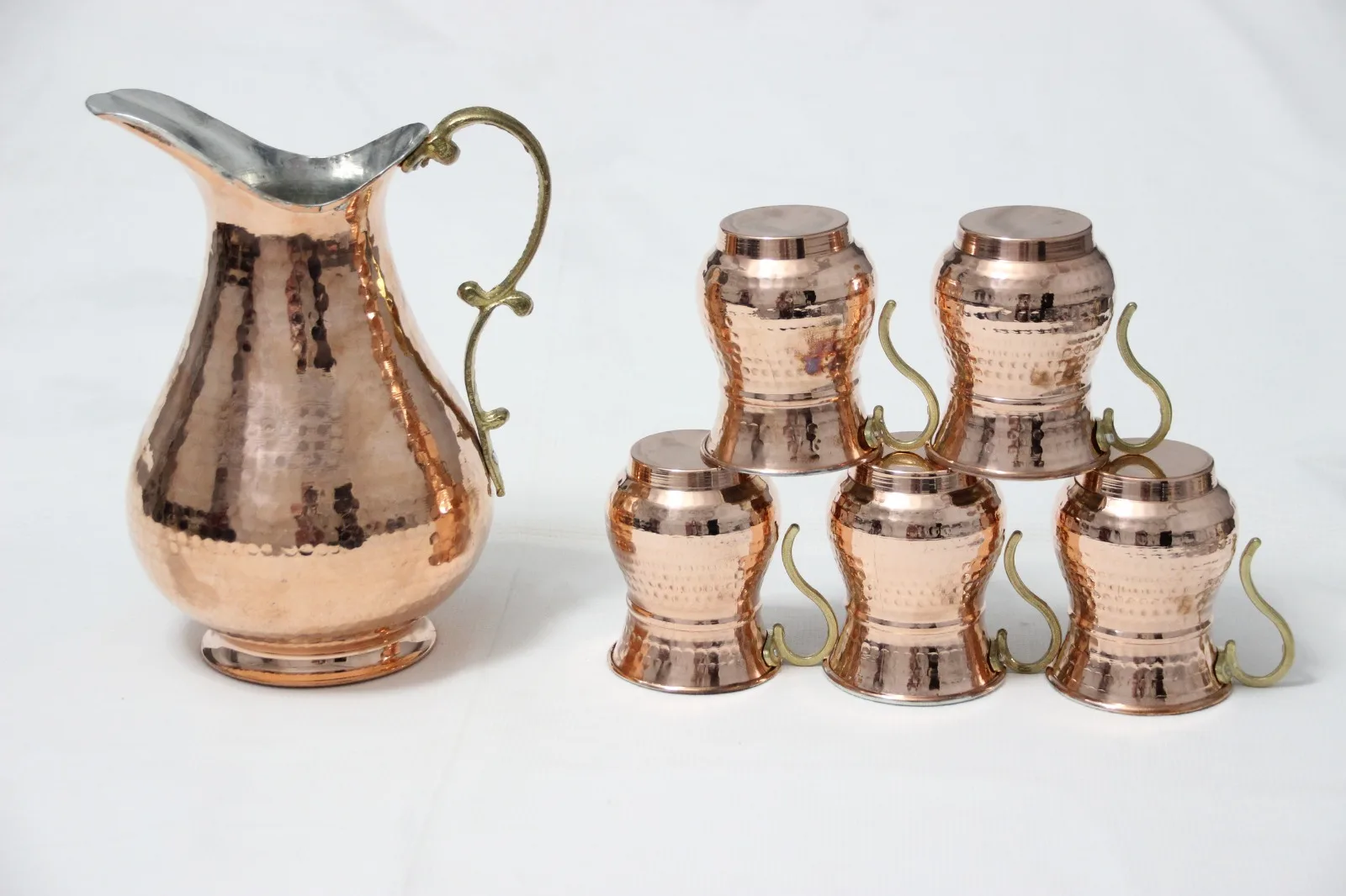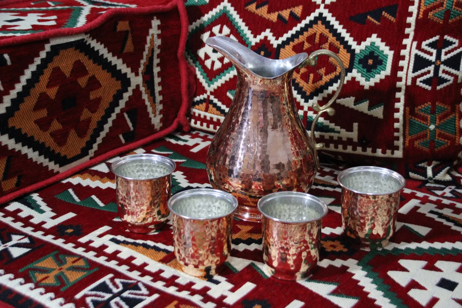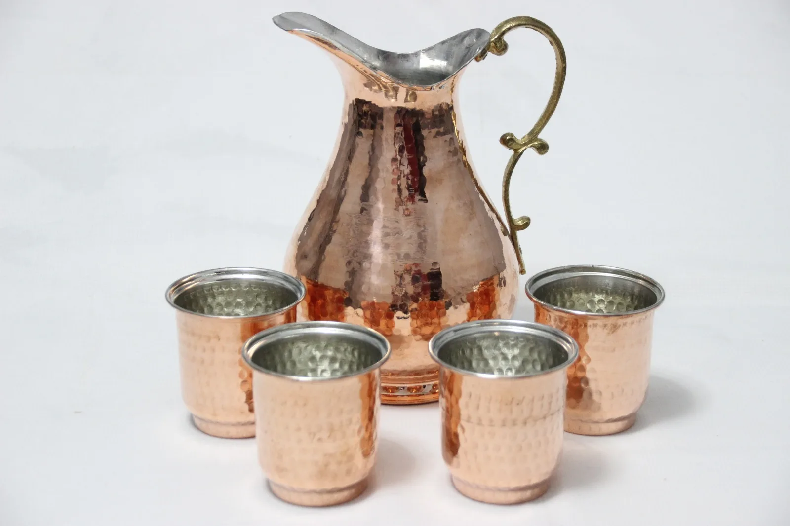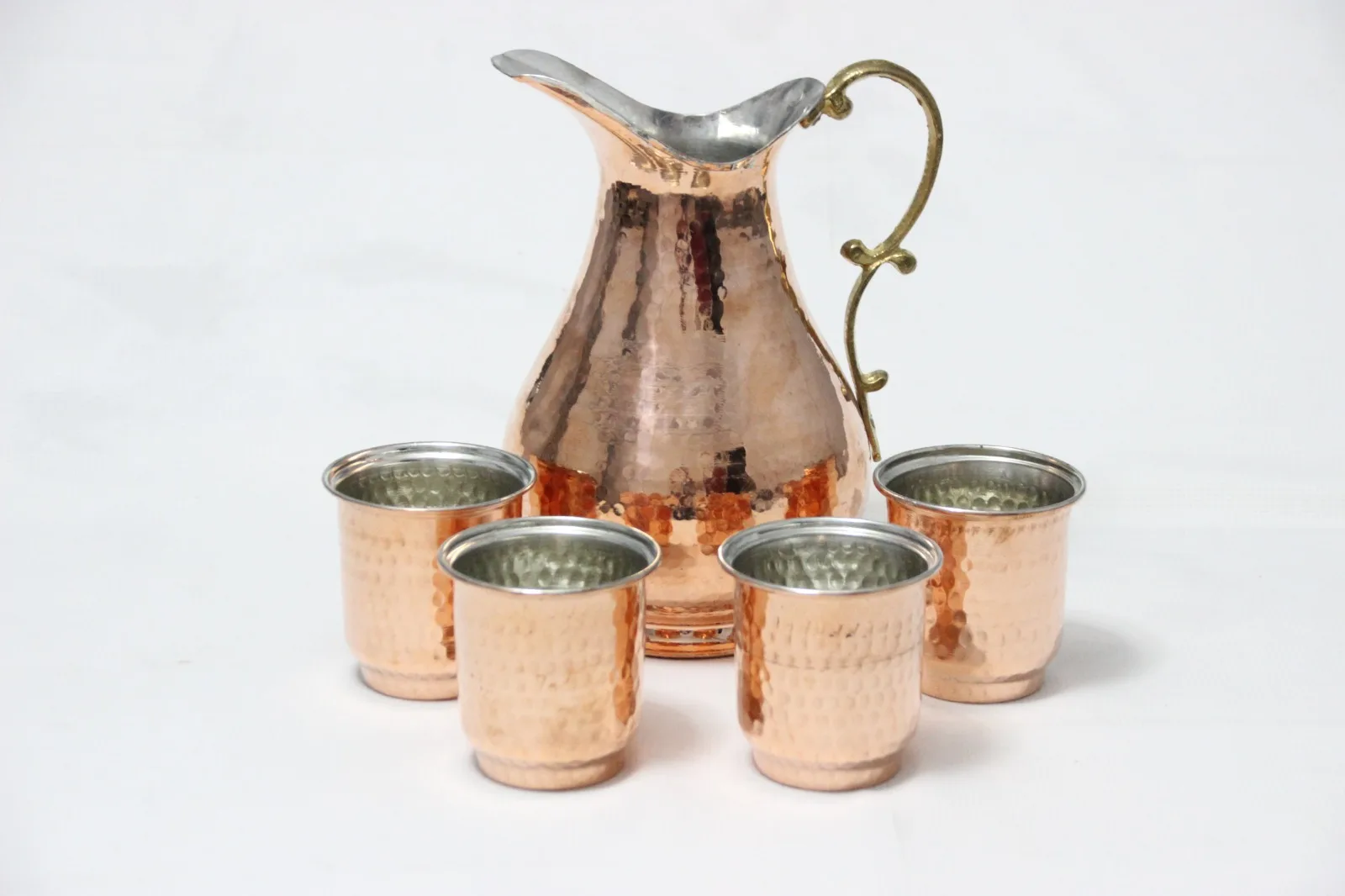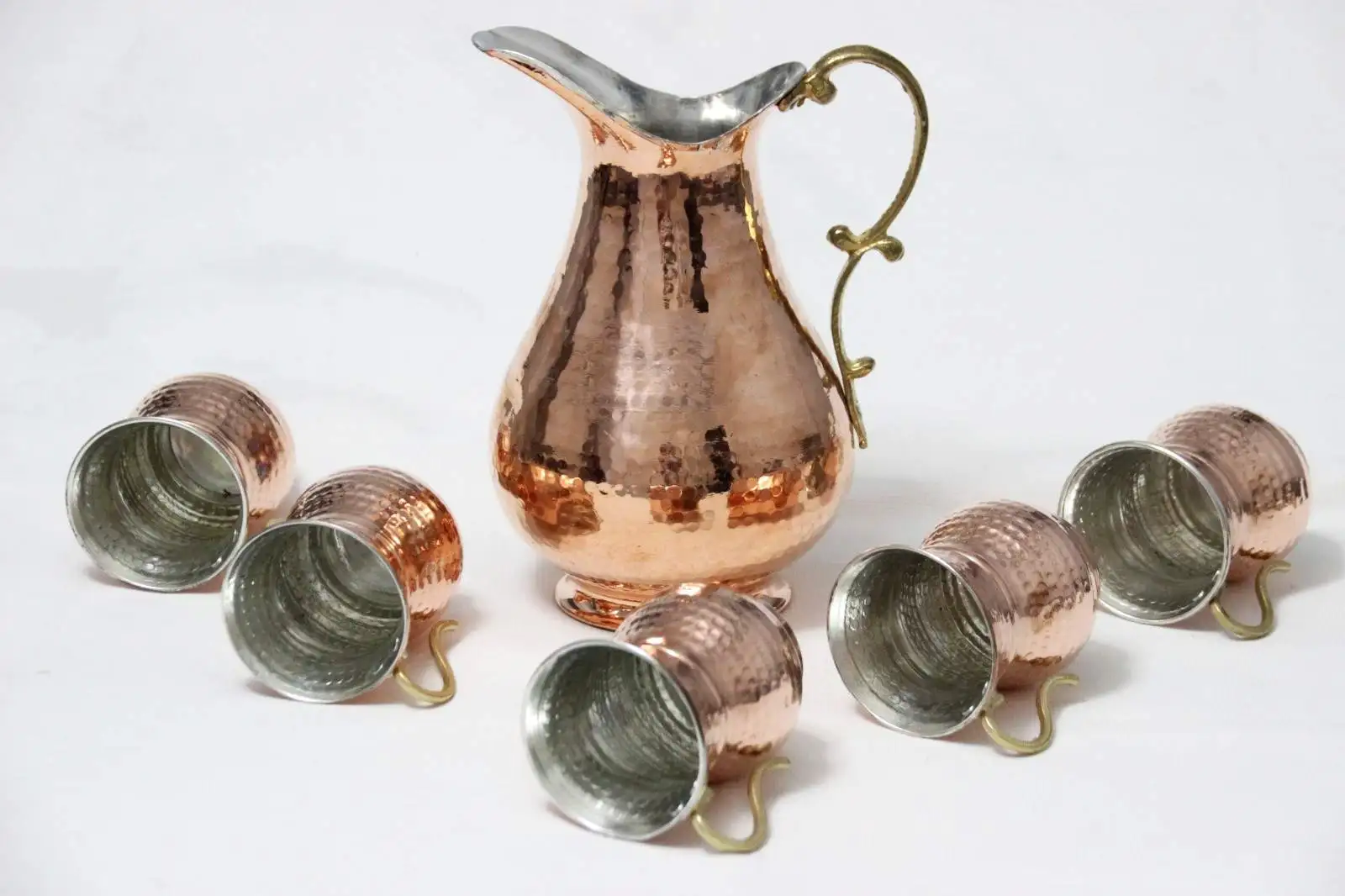Аутентичные Медь кувшин для воды из твердого английского фарфора с рисунком с ручкой ручной работы турецкий 100 натуральный 2 литра