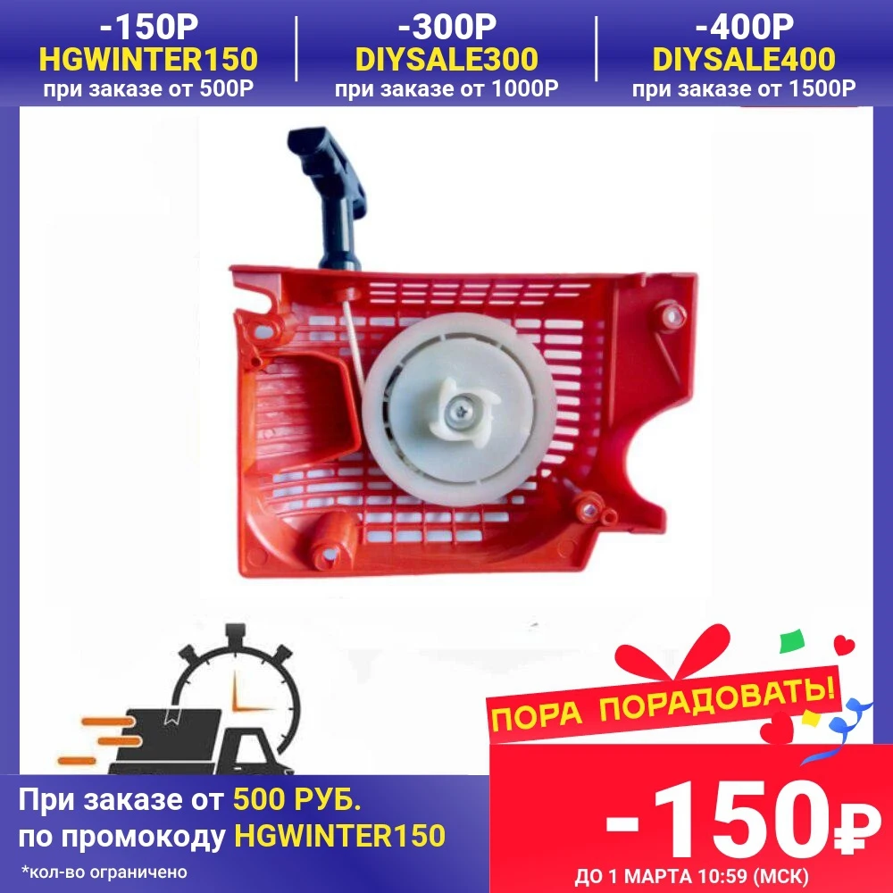 Доставка быстрая, ещё бы со Ставрополья шло долго до Ижевска. Пластик реально мягкий. Стартер по месту встаёт с натягом. Единственный плюс - шкив для шнура диаметром больше, чем у штатного стартера этих пил. Поэтому запустить пилу намного легче. Только потому поставил 5 звёзд