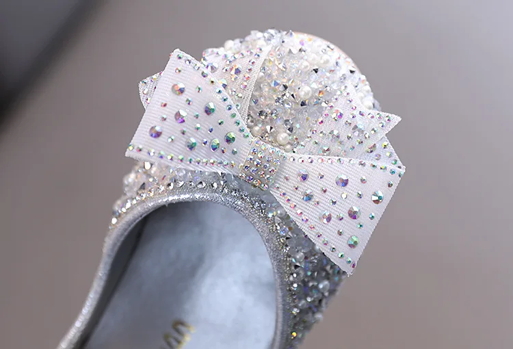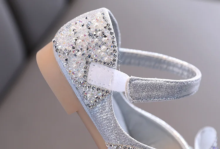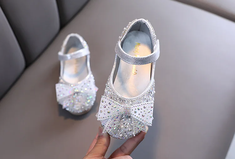 Детская обувь принцессы с блестками и бантом, Детские Серебристые р...