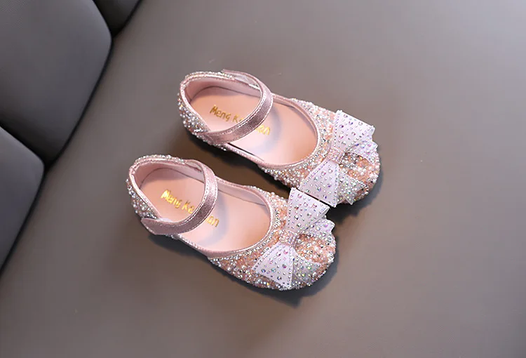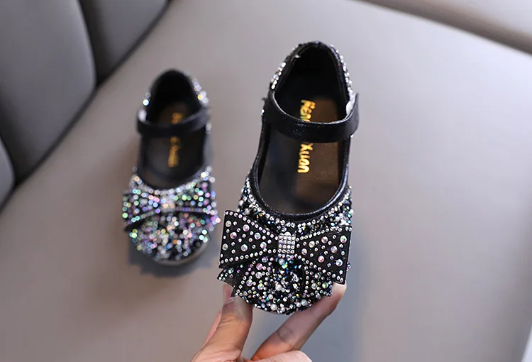 Новинка 2022, детские туфли принцессы Стразы с бантом, детские туфли для девочек вечерние обувь для выступлений и танцев, Детская Студенческая обувь на плоской подошве, размер E877