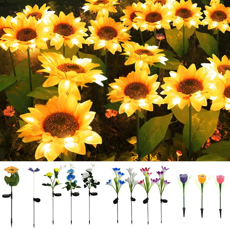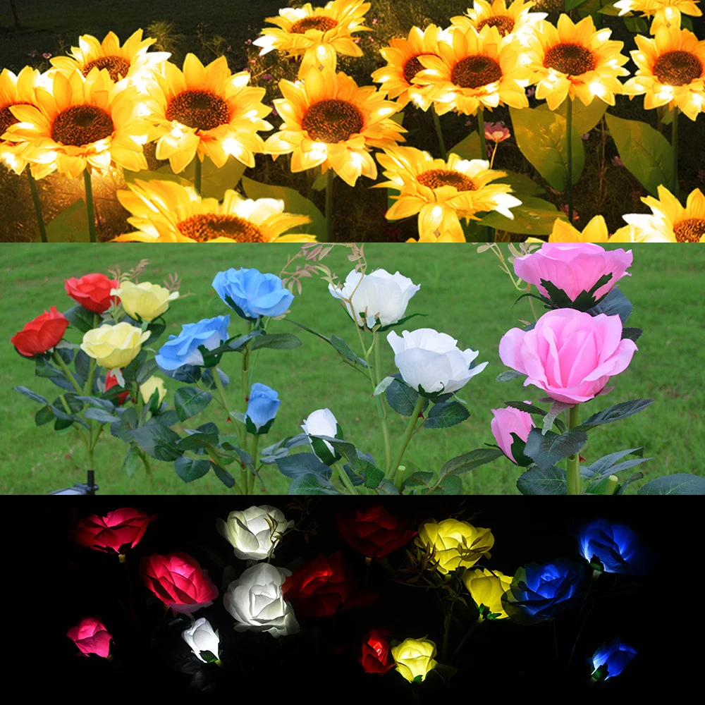 Уличная садовая Светодиодная лента на солнечной батарее, ночное освещение, декоративная лампа для подсолнуха, искусственные цветы, водонепроницаемая панельная Солнечная лампа, 5 м