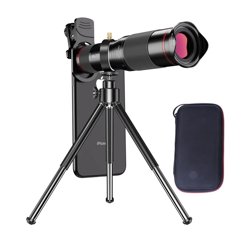 48x HD телеобъектив для смартфона мощный зум Монокуляр со штативом поддержка мобильный телефон камера телескоп дальность длины