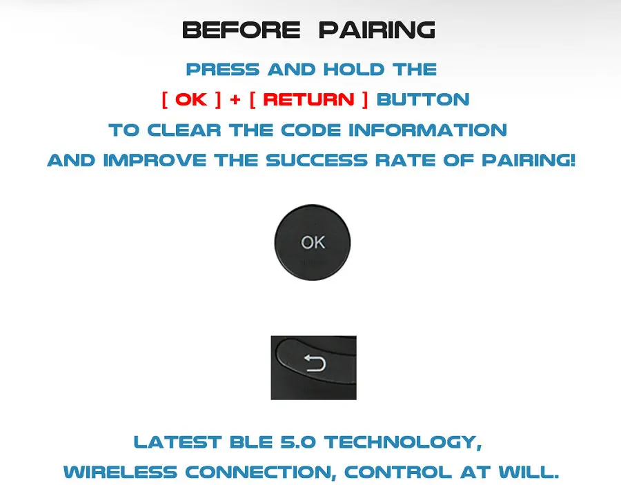 2. Затем нажмите и удерживайте кнопку «OK + Return», когда светодиодный светильник быстро мигает, он перейдет в режим предварительного сопряжения.