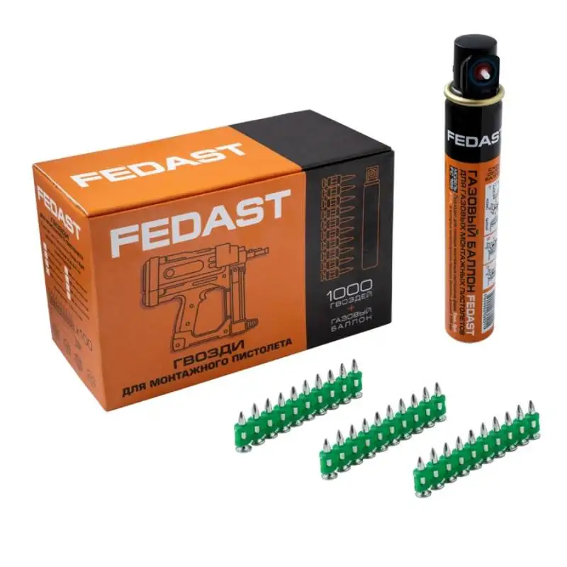 Гвозди 3.0*22 мм усиленные для монтажного пистолета в комплекте с газовым баллоном 165 мм FEDAST
