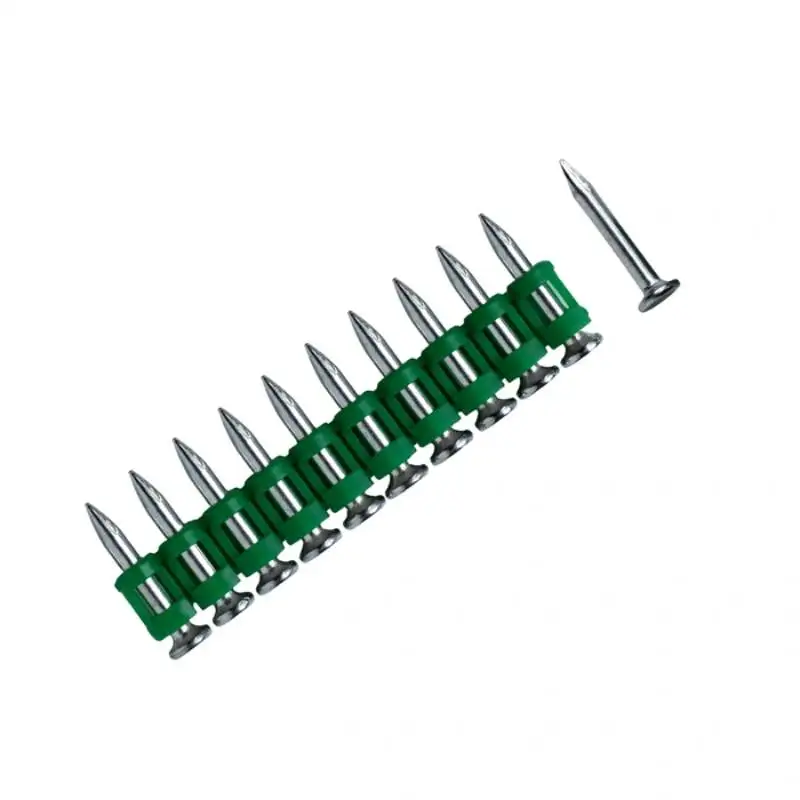 Гвозди для монтажных пистолетовFEDAST тип CN усиленныешироко используются в общестроительном монтаже: монтаж фанеры к бетону, монтаж тонких металлических и алюминиевых направляющих к бетону и кирпичу, монтаж профлиста к бетону, кирпичу и металлическим балкам. Также очень удобен для пристрелки направляющих для гипсокартонных плит, штукатурной сетки и инженерных систем.Данный тип гвоздей актуально использовать при работе с бетоном невысокой марки прочности (малоэтажные монолитные строения), а также с более хрупкими материалами, такими как кирпич, газоблок и т.д.