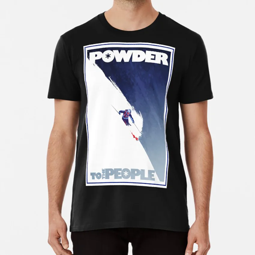 Пудра для людей, футболка для лыж, горнолыжного спорта, катания на спине, лыжного спорта, снежного порошка, катания на лыжах, экстремальных видов спорта, плакат лыжи, лыжная иллюстрация