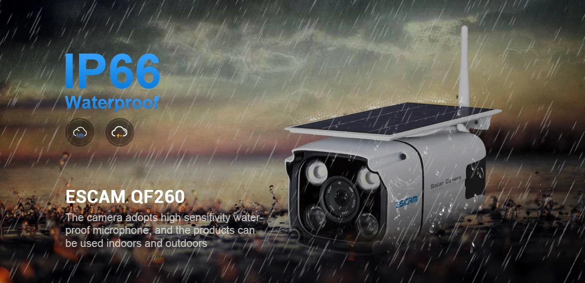 ESCAM QF260 IP67 1080P HD Солнечная беспроводная WIFI IP-камера вид...