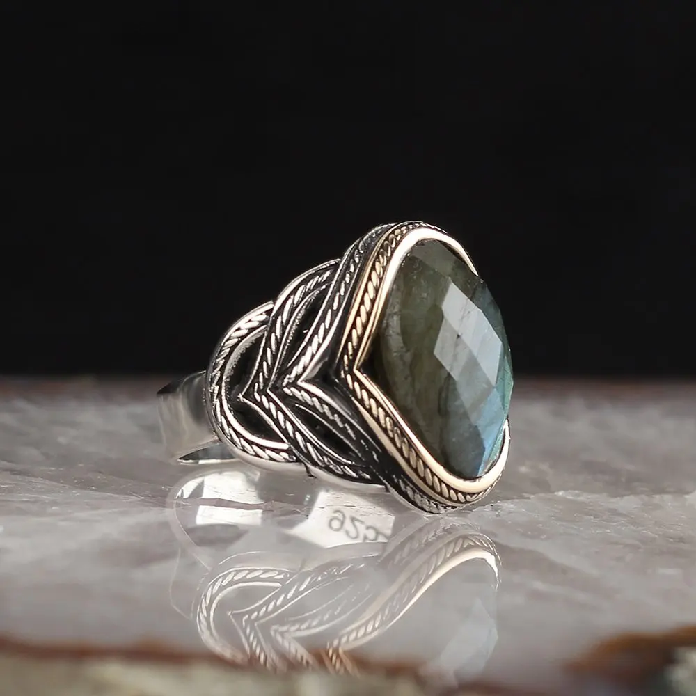 Настоящее серебряное кольцо с натуральный сапфир или рутил или лабродорит камень серебро Для женщин кольцо серебряное кольцо для мужчин c логотипом отличный подарок для нее