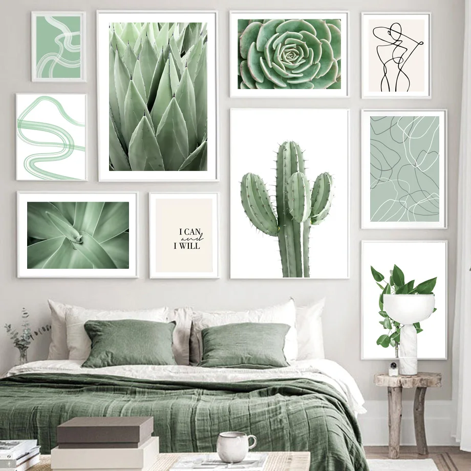 Зеленая Агава кактус растения листья абстрактная настенная Картина на холсте скандинавские постеры и принты для гостиной Декор настенные картины