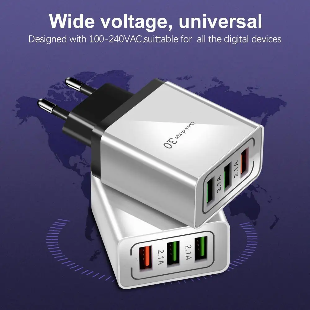 3 USB зарядное устройство Быстрая зарядка 3,0 быстрое USB настенное...