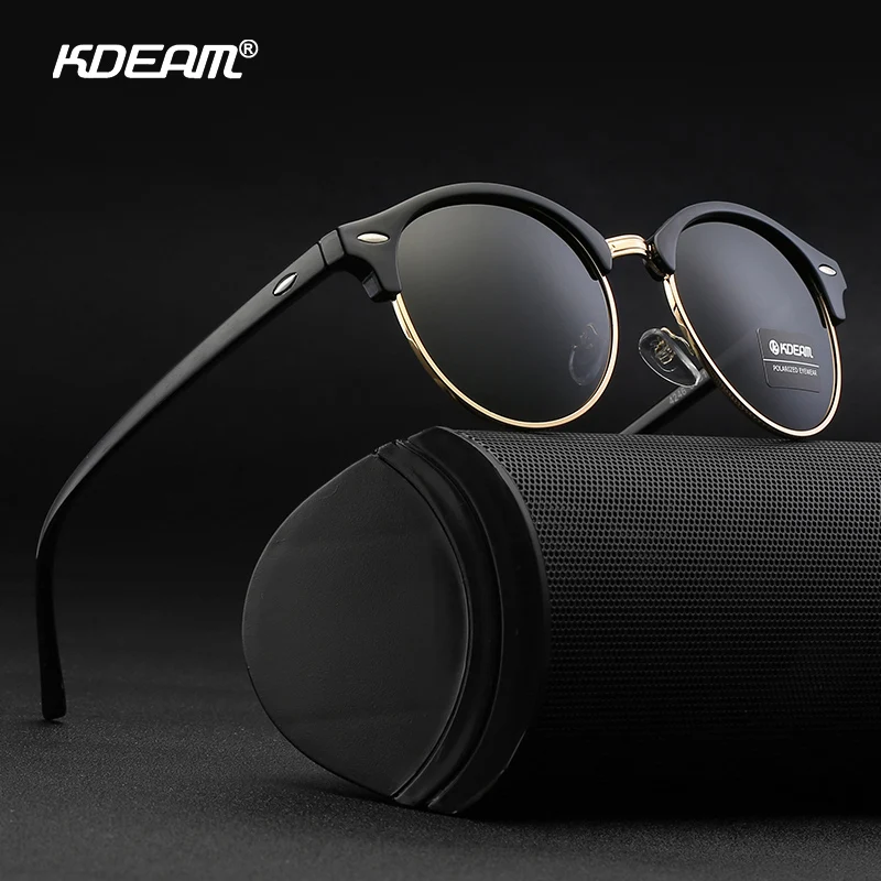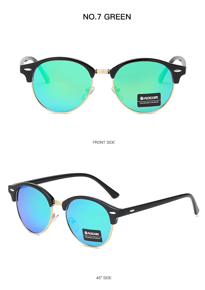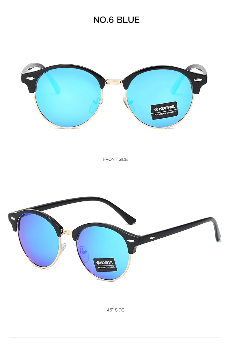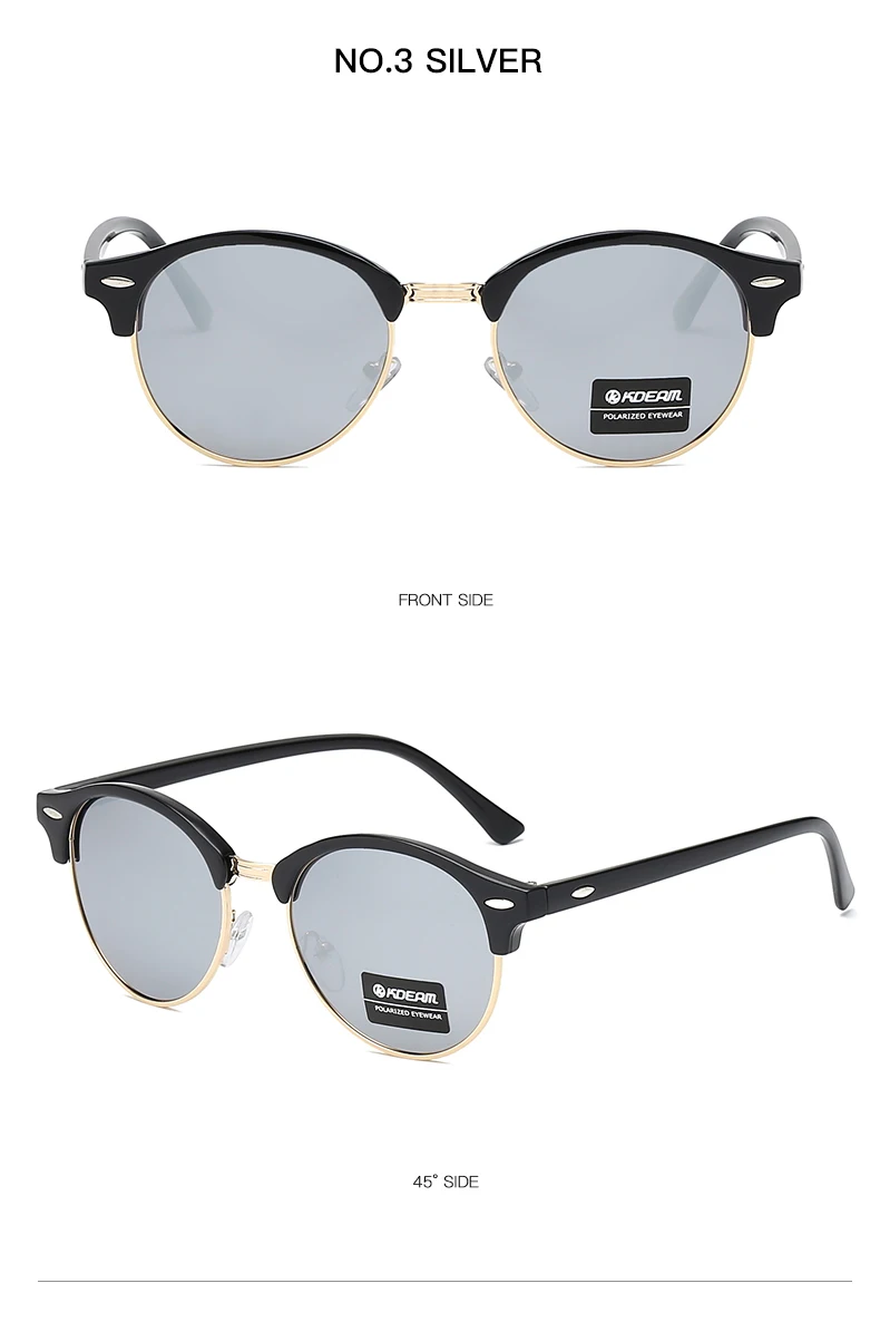 Солнцезащитные очки KDEAM круглые для мужчин и женщин, классические зеркальные поляризационные, с защитной коробкой, в комплекте CE