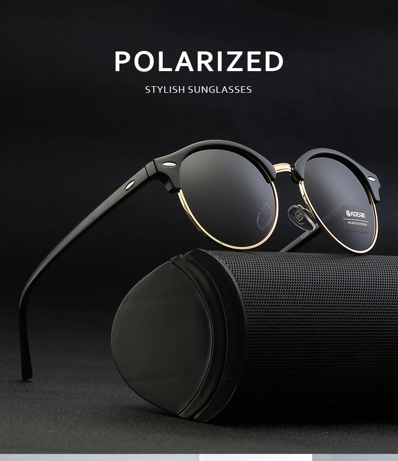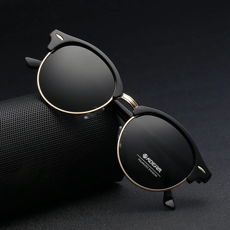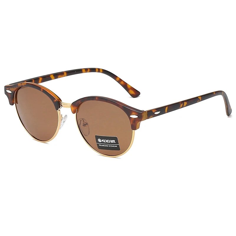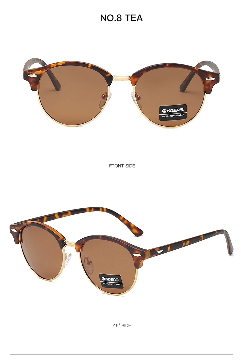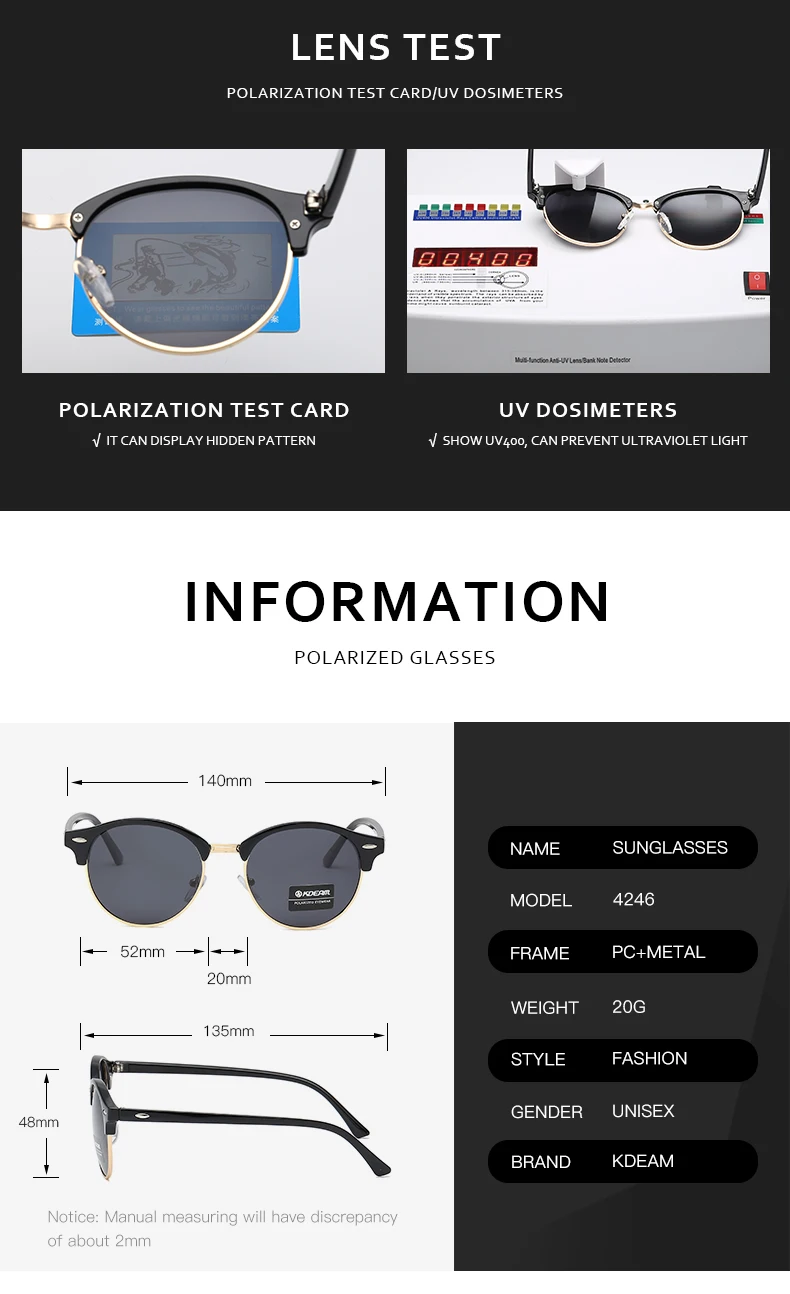 Солнцезащитные очки KDEAM круглые для мужчин и женщин, классические зеркальные поляризационные, с защитной коробкой, в комплекте CE