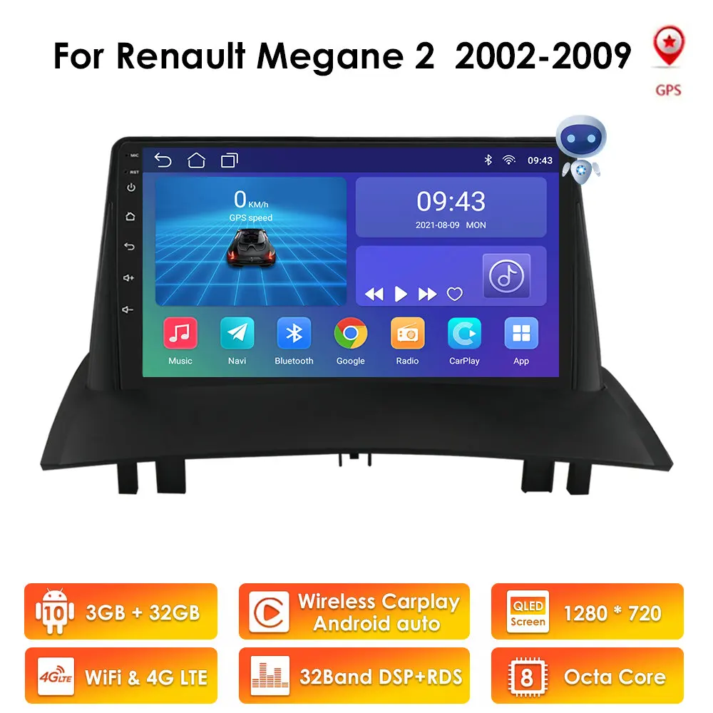 Автомагнитола 2 Din для Renault Megane 2 2002-2009, 4G, стерео, GPS, навигация, мультимедийный видеоплеер, FM, Wi-Fi, с рамкой