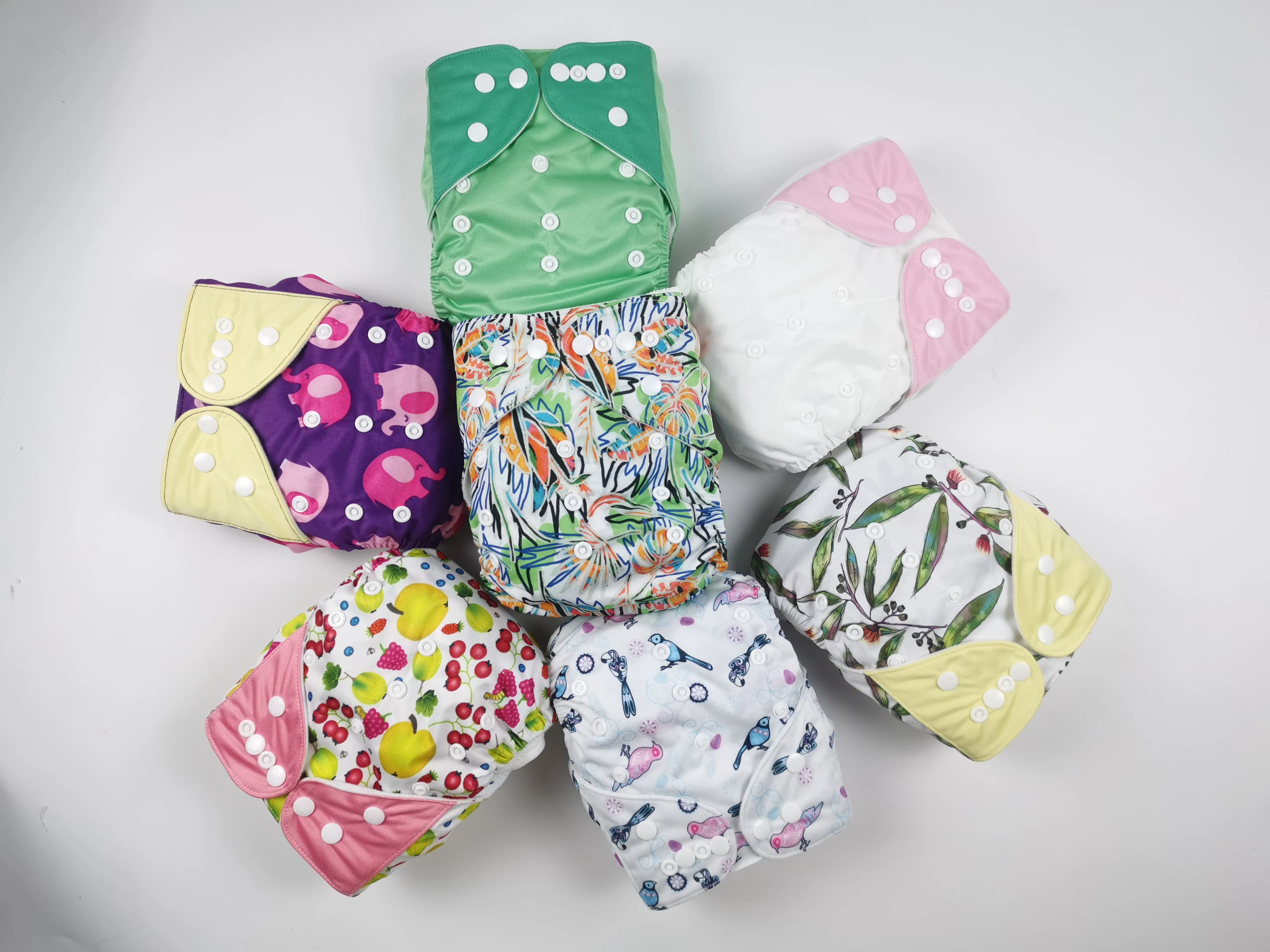 Материал подгузника:(1). Внутренний материал-замшевая ткань. Внешний материал-ткань с принтом, водонепроницаемая и дышащая ткань.(2).-внешний слой: внешний/защитный слой изготовлен из новой усовершенствованной ламинированной ткани из термопластичного полиуретана (ТПУ), которая отличается высокой водонепроницаемостью, дышащей и очень прочной. Его можно мыть без каких-либо деформаций и обеспечивает защиту вашего ребенка, кровать и постельное белье от утечки.-Внутренний слой: мягкая внутренняя ткань замша мягко прикасается к коже вашего ребенка. Этот слой может отводить влагу от кожи детей и поддерживать сухость дна. Во внутреннем слое есть карман для вставки/вкладышей из микрофибры, вы можете напечатать вставку внутри кармана для максимальной впитывающей способности. Все эти передовые модели позволяют вашему ребенку чувствовать себя легко и комфортно. Это то, что все родители рады видеть.