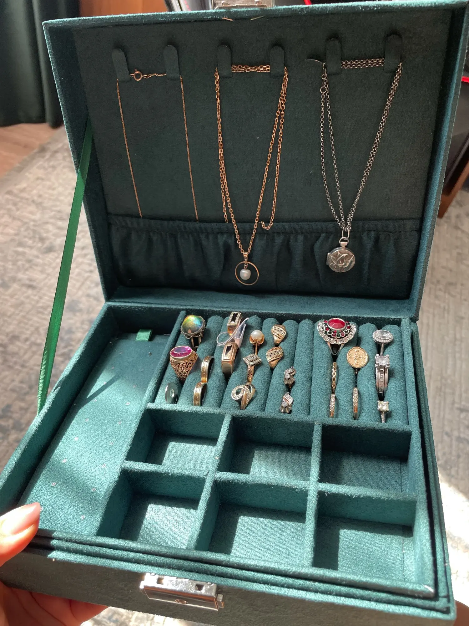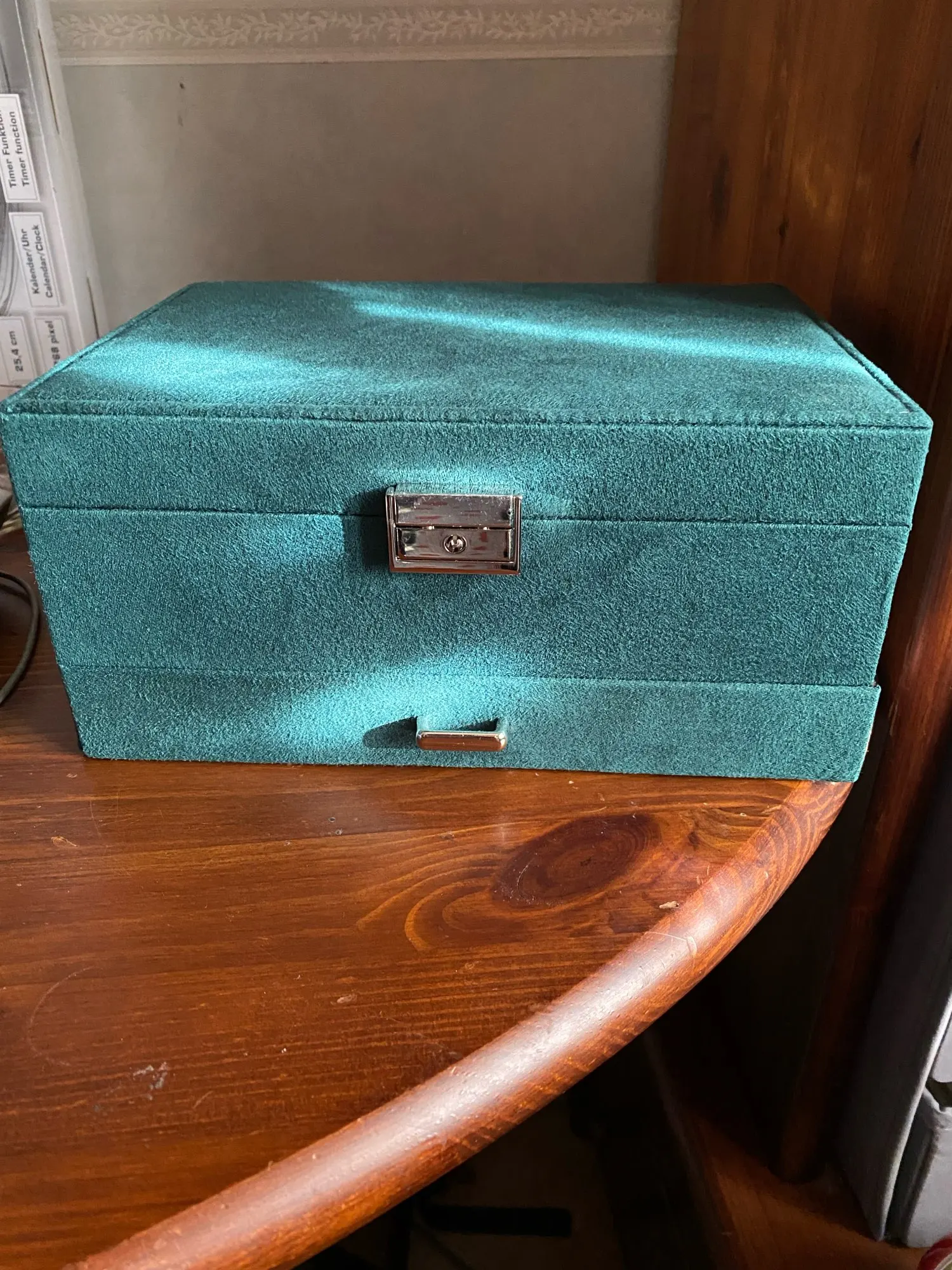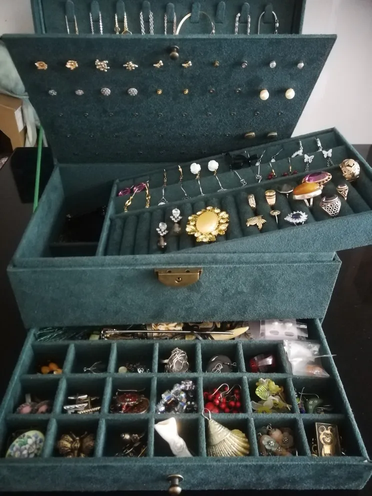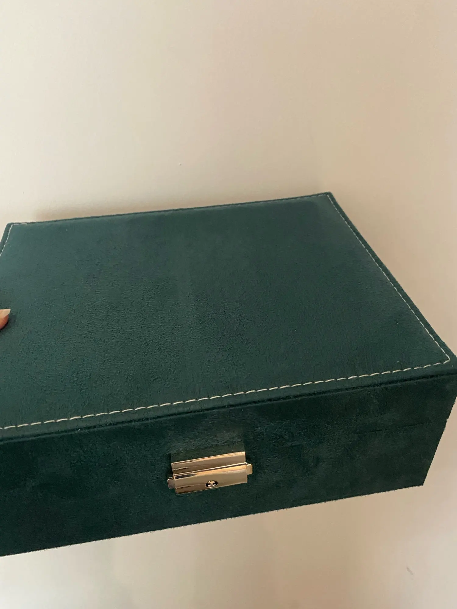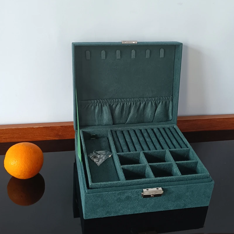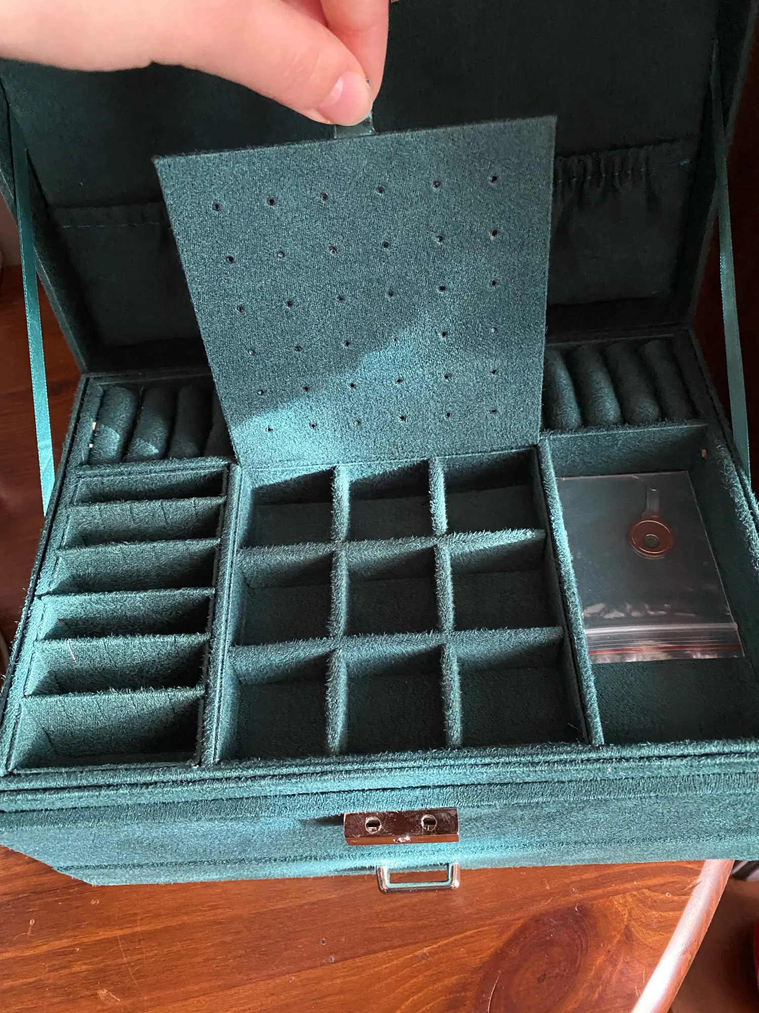 Коробка для ювелирных изделий поставляется в течение 5 дней, доставка и упаковка dell очень точное отслеживание. Внутри точно так же, как описано, я нашла даже ключ и две резинки для волос в подарок. Нижний ящик полностью отстегивается.