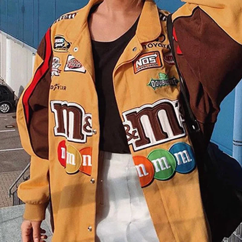 Женская зимняя куртка-гоночная куртка Y2K с принтом, куртка-бомбер ...