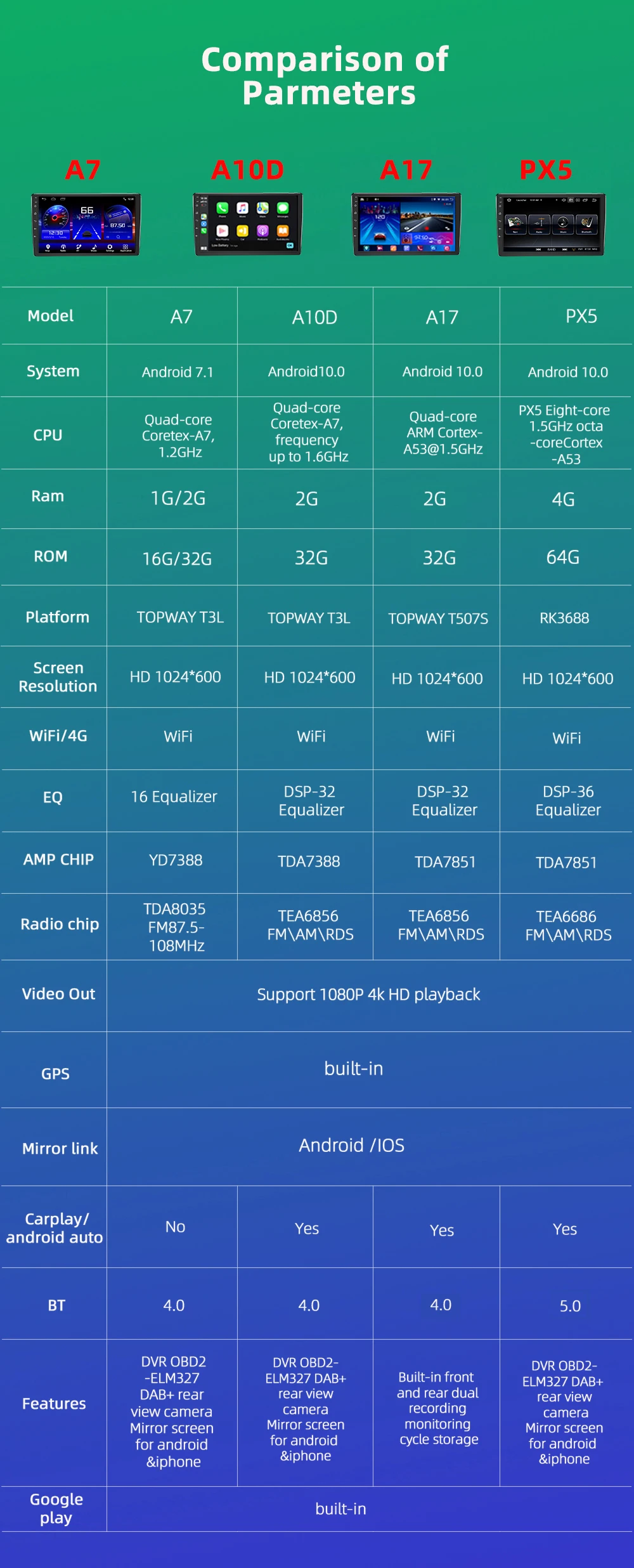 Поддержка Carplay/Android Auto:A10D,A17D,PX5