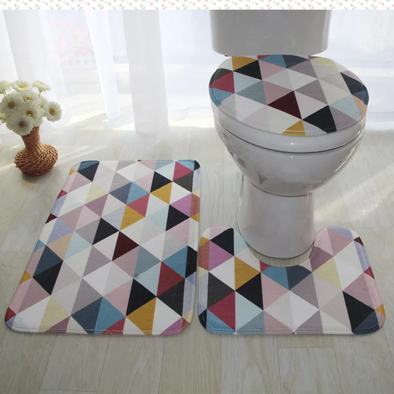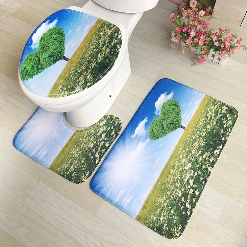 3 шт.компл. коврик для ванной комнаты, поглощающий воду напольный ковер, простые коврики с принтом, фланелевый нескользящий ковер + крышка для унитаза + коврики для ванной