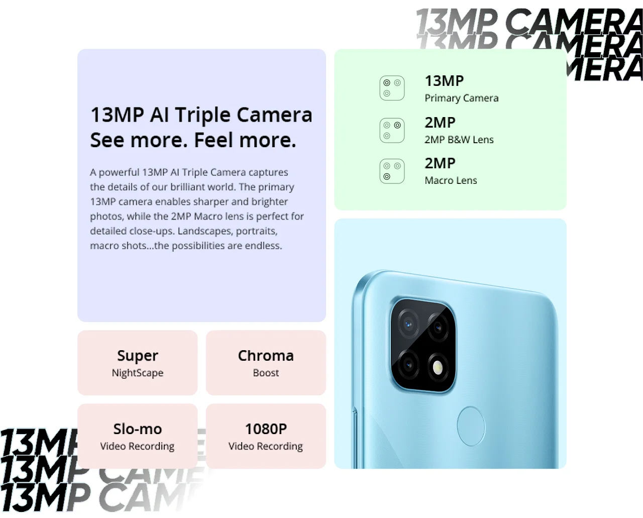 13 МП AI Тройная камера видит больше. Почувствуйте больше