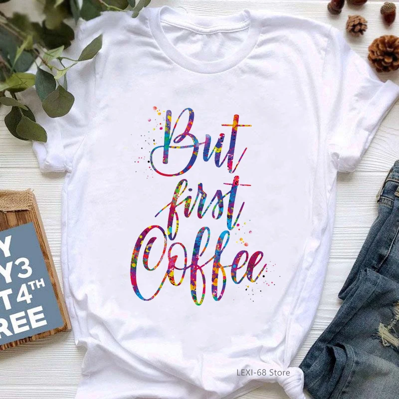 Женские летние топы, футболка с акварельным принтом в стиле Харадзю...