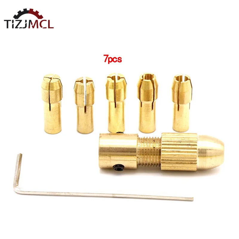 Патрон для дрели, 7 шт., медная папка для дрели, медный колпачок, оси, Цанга для дрели с гаечным ключом 22,354,055,05