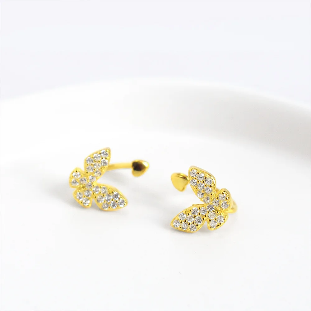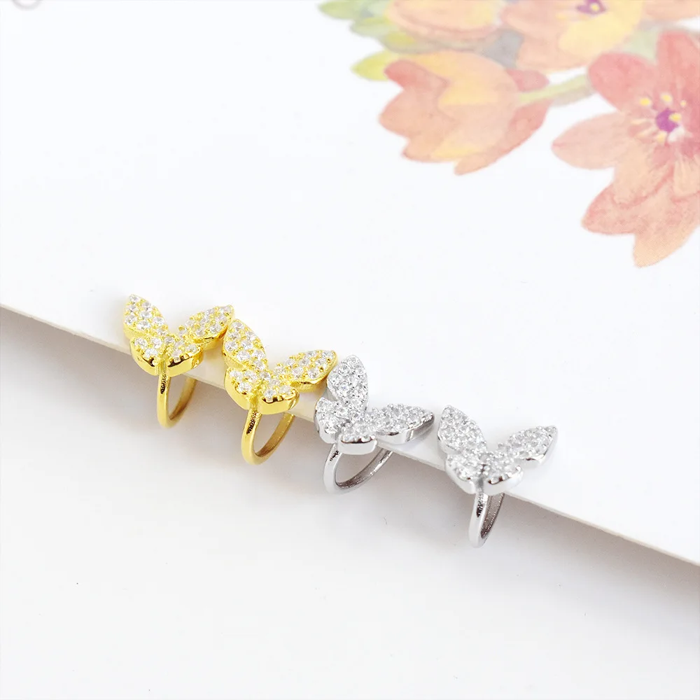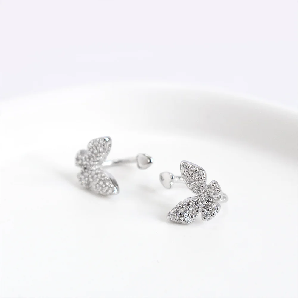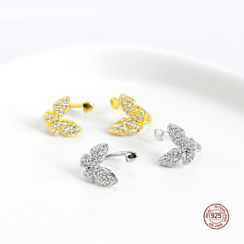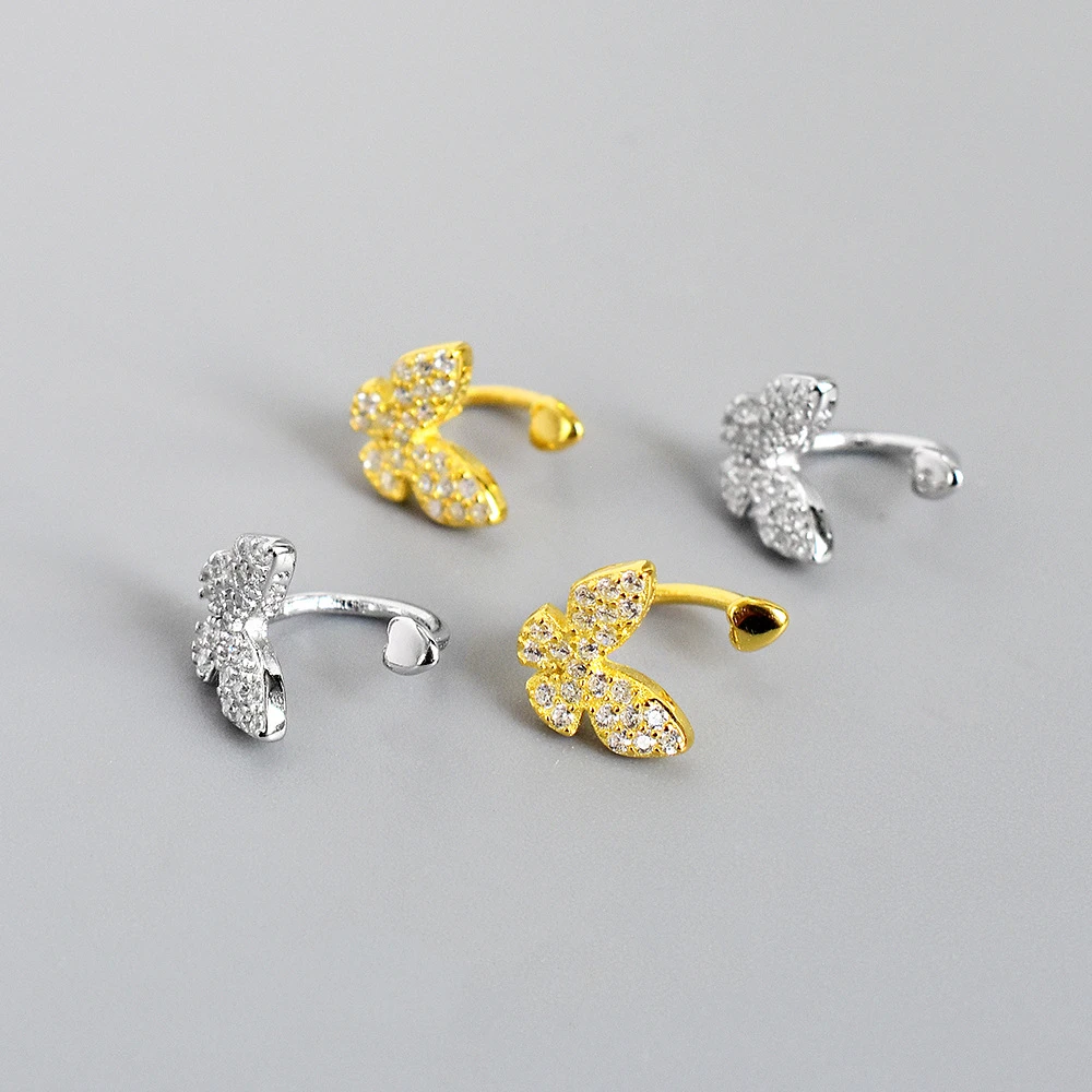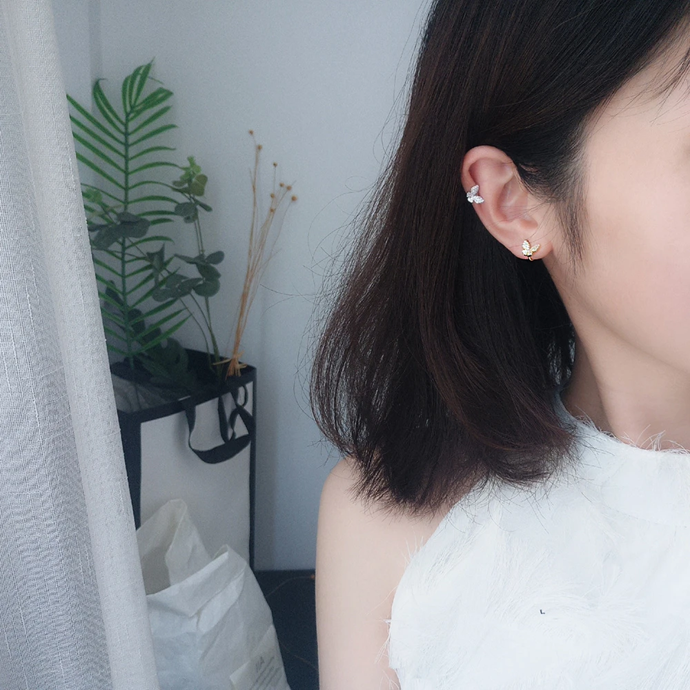 LKO настоящее серебро 925 пробы корейский стиль модные блестящие бабочки ушные манжеты для женщин ювелирные изделия хрустальные серьги для девочки подарок