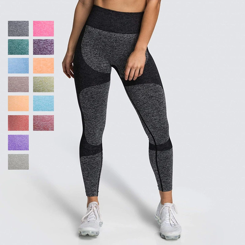 Бесшовные вязаные ягодицы влагоотводящие штаны для йоги спортивные ...