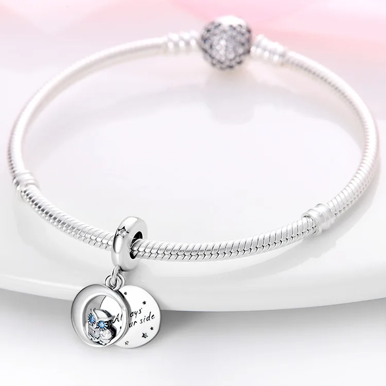 Бусины-шармы серебряные в виде совы на Луне и звезде