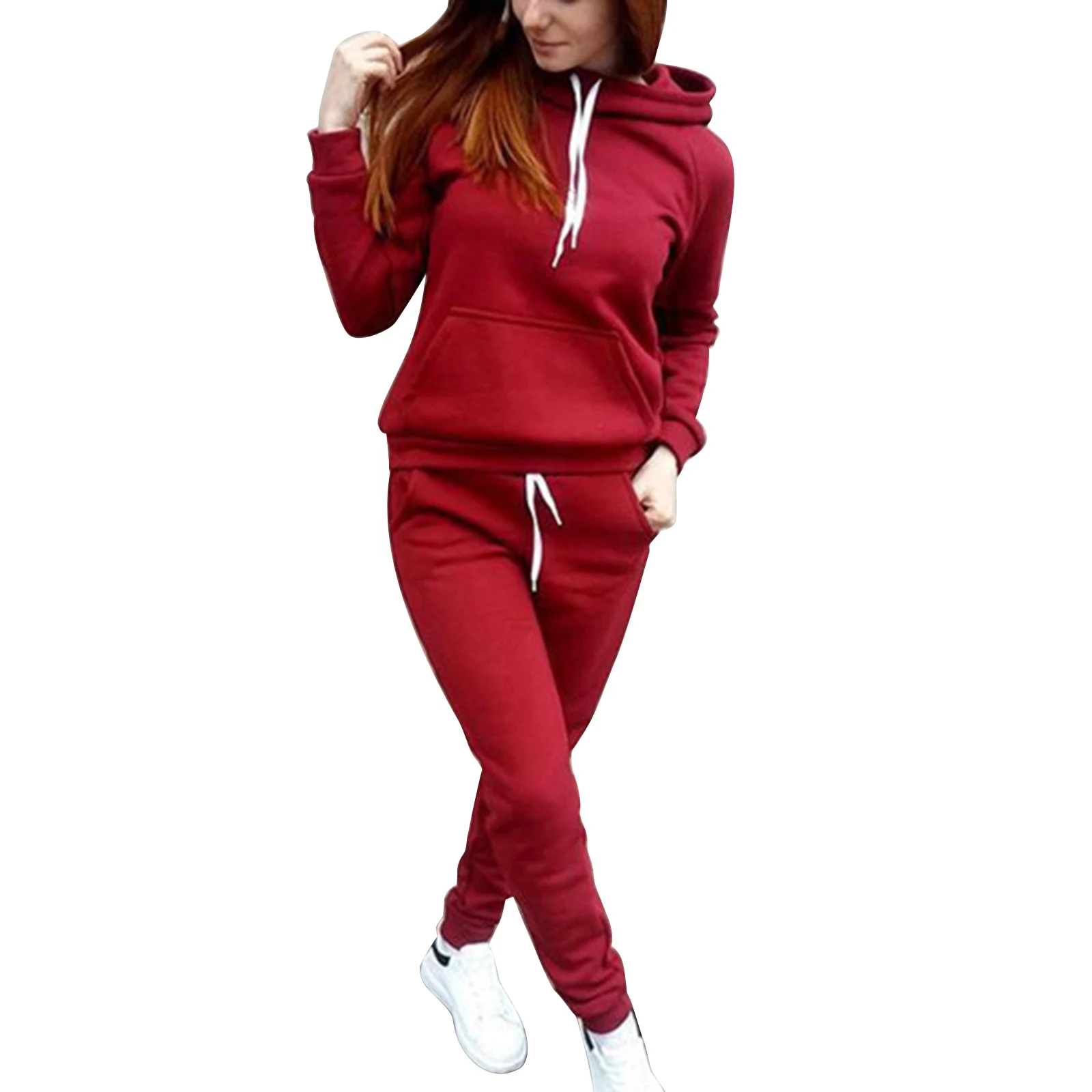 Женская спортивная одежда, комплект из 2 предметов, однотонная толстовка, свитшот, повседневные штаны, 2021