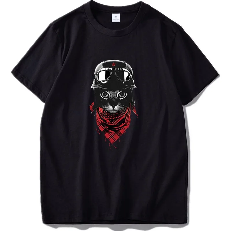 Забавный кот со шлемом и шарф, рубашка, модные крутые животных Футболка "Влюбленные" дышащая 100% хлопок Hipster