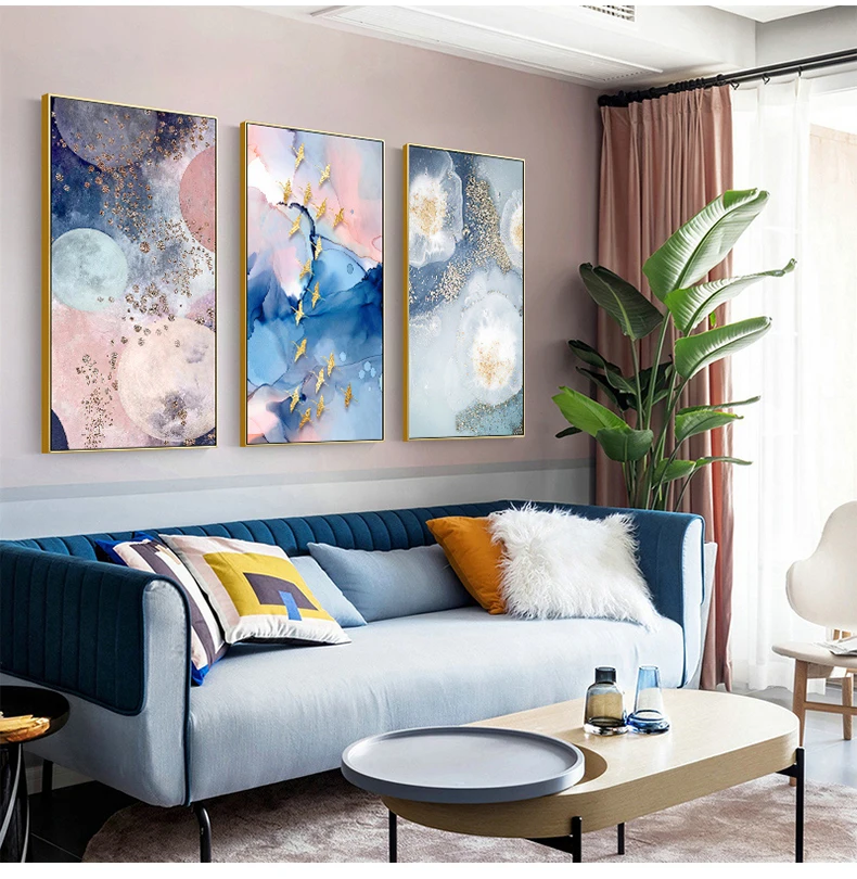 Абстрактный пейзаж, настенная живопись на холсте, розовый небесно-г...