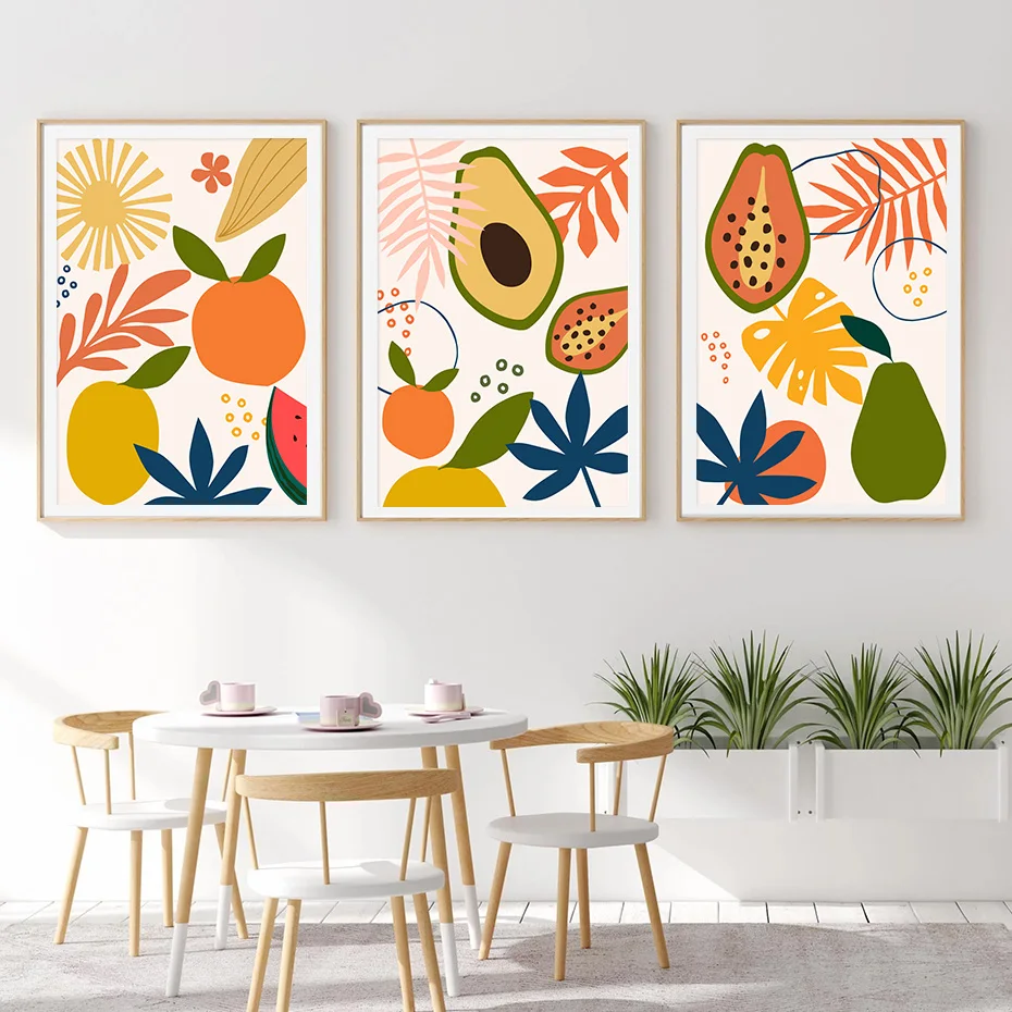 Картина на холсте с изображением тропических фруктов, абстрактная, для кухни, столовой, домашнего декора