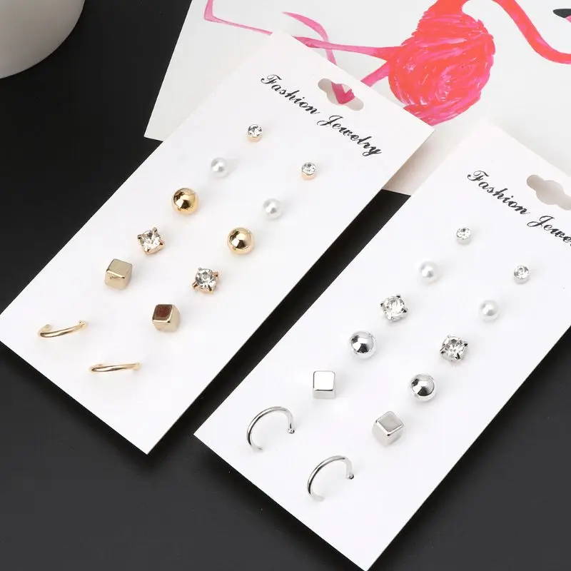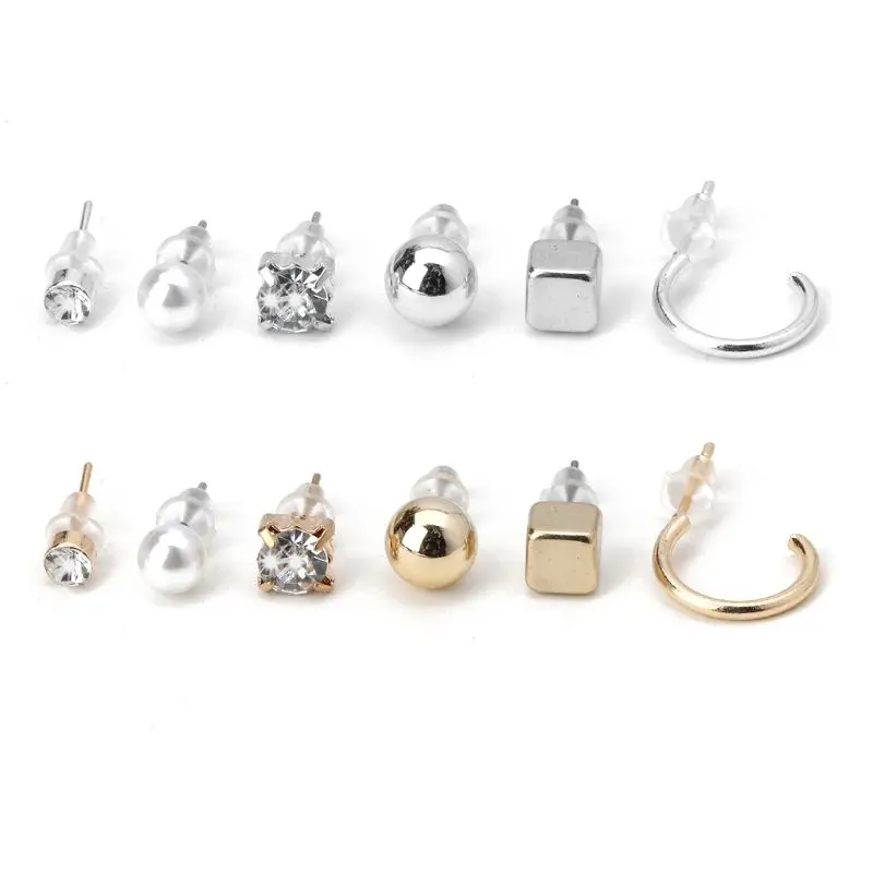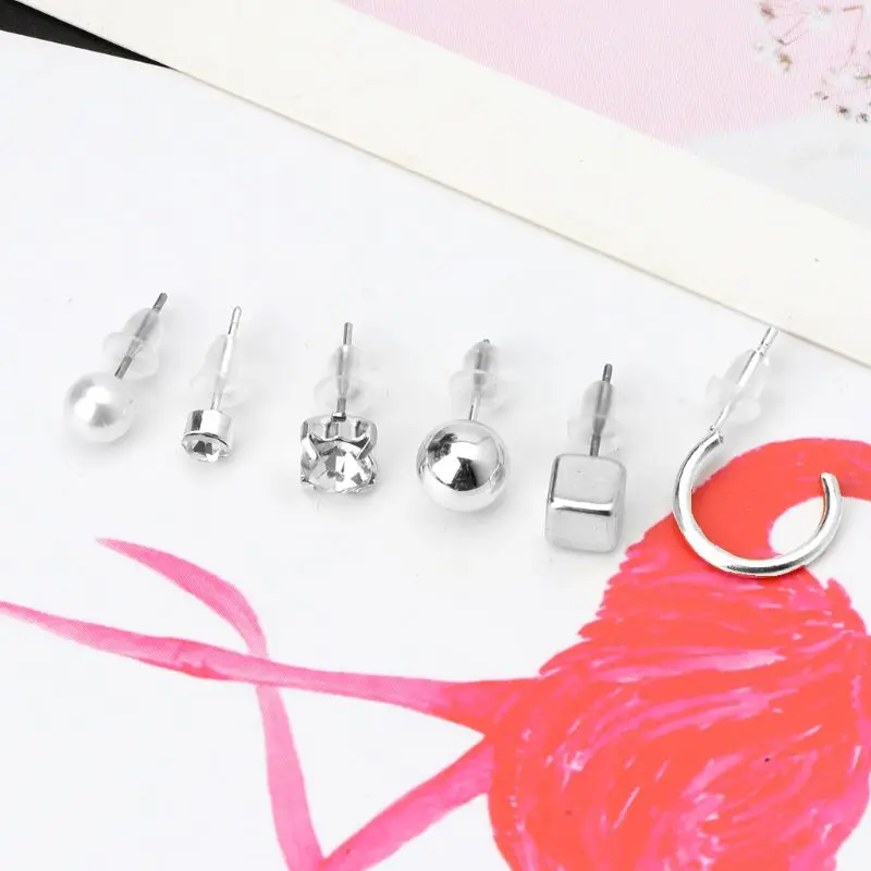 6 пар жемчуг CZ обруч Шпильки неправильные геометрические сортирова...