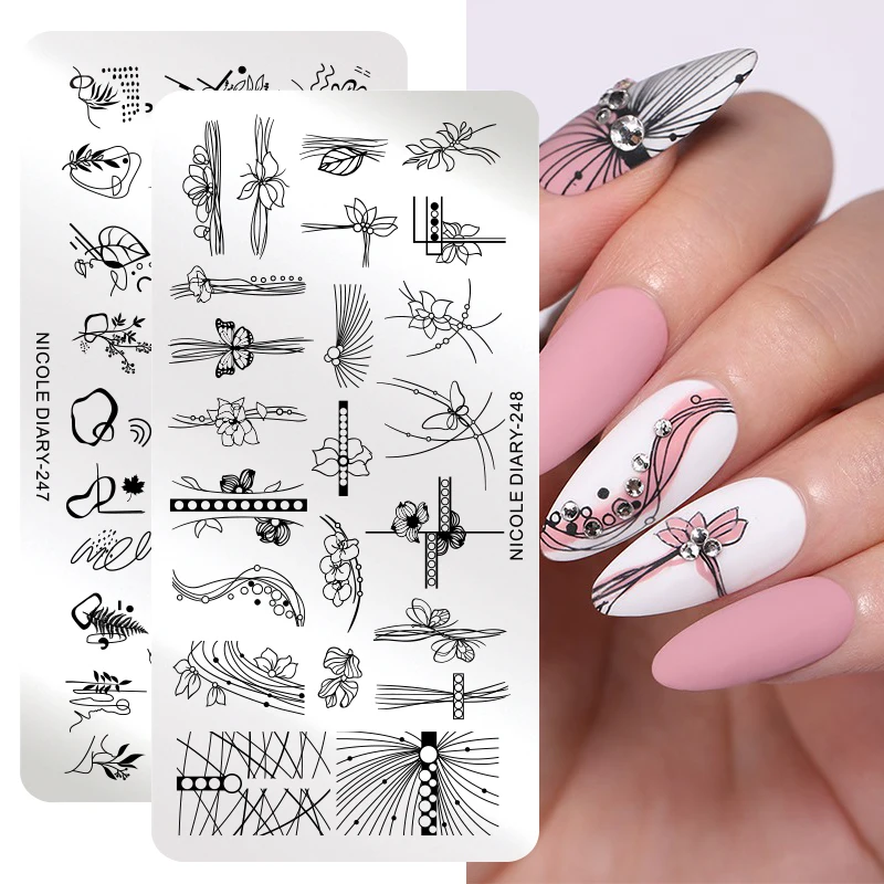 Трафареты NICOLE DIARY для стемпинга ногтей, пластины в виде листа, геометрической формы, бабочки, цветка, для художественных работ