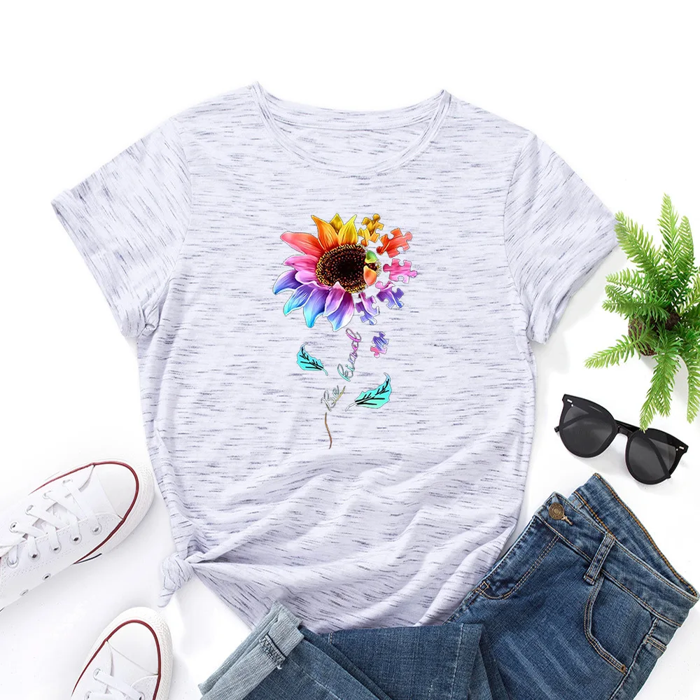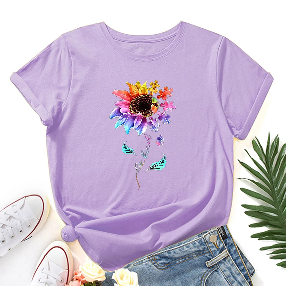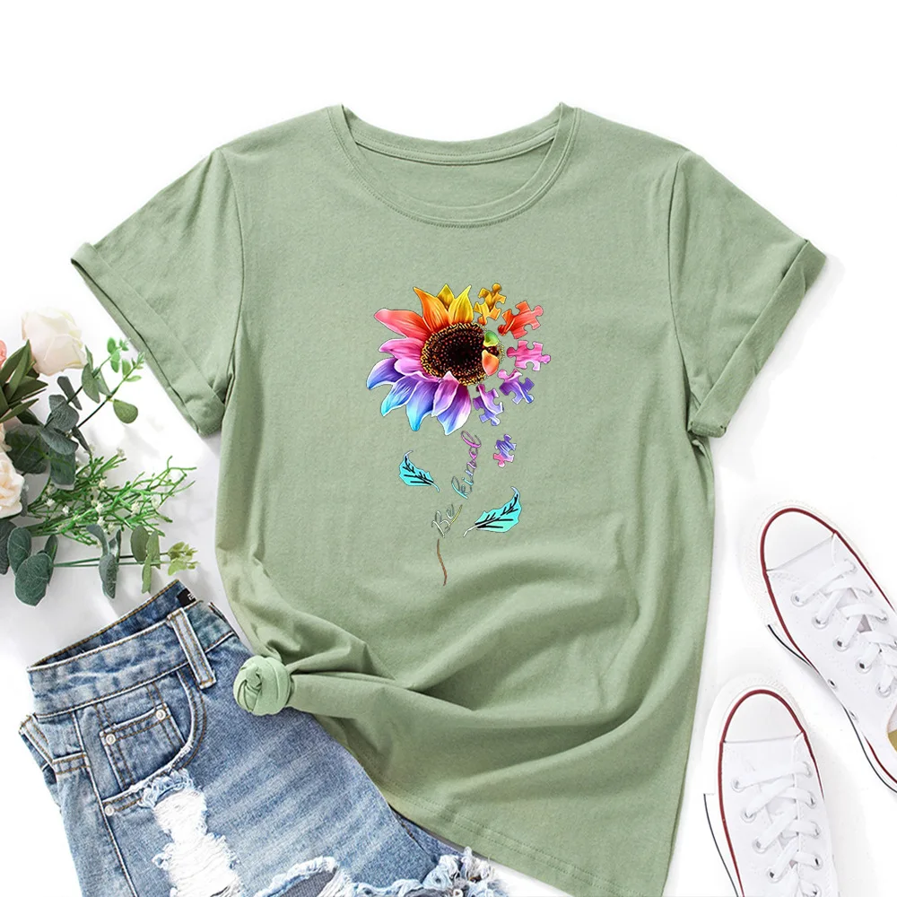 Футболка женская с принтом подсолнуха Be Kind, 100% хлопок, топ с круглым вырезом и коротким рукавом, лето