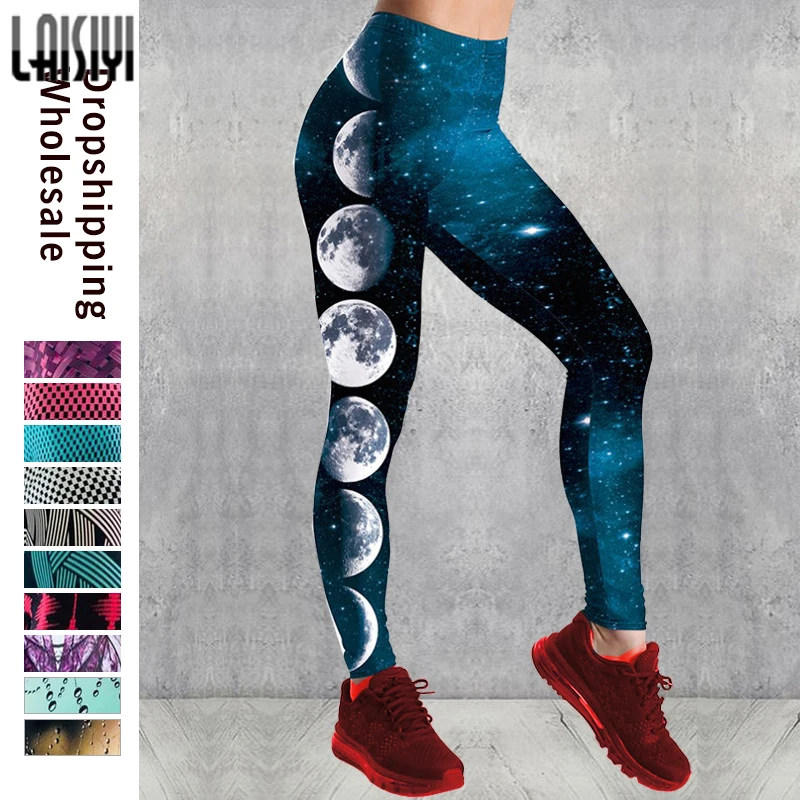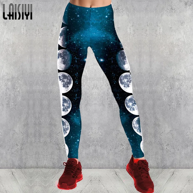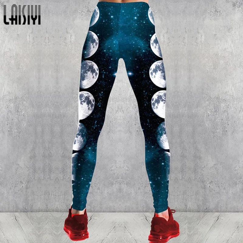 Леггинсы для фитнеса с высокой талией, женские модные леггинсы с 3D принтом Луны, сексуальные леггинсы с пуш-ап длиной до щиколотки, эластичные леггинсы для фитнеса